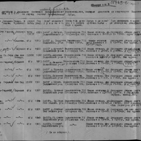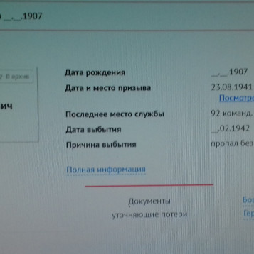 Боевой путь ветерана Дата призыва 23 августа 1941 году Балтачевским РВК. Последнее письмо отправлено моей бабушке в декабре 1941 году из города Серпухова. Он воевал в Караульной команде № 92. Пропал без вести 02.1942 года.
