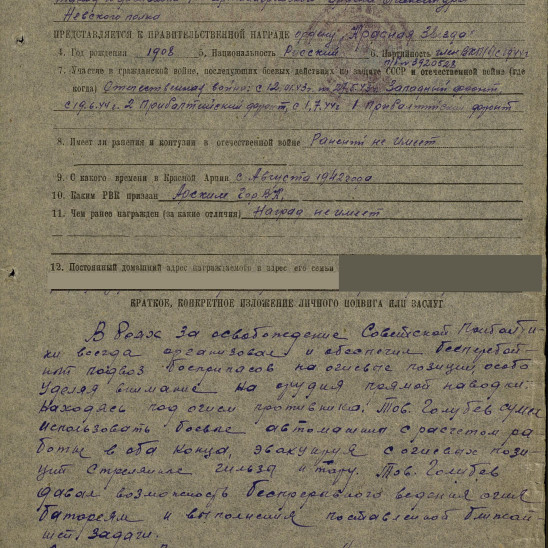 Призван на службу в августе 1942г в