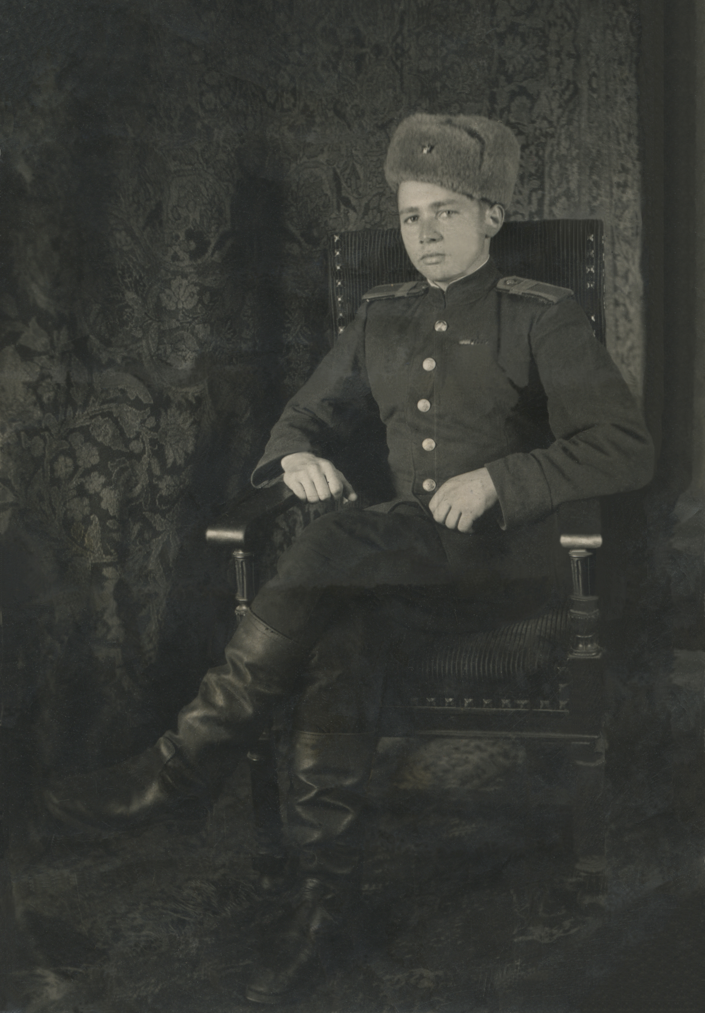 На снимке совершенно юный молодой человек, на голове залихватски надетая