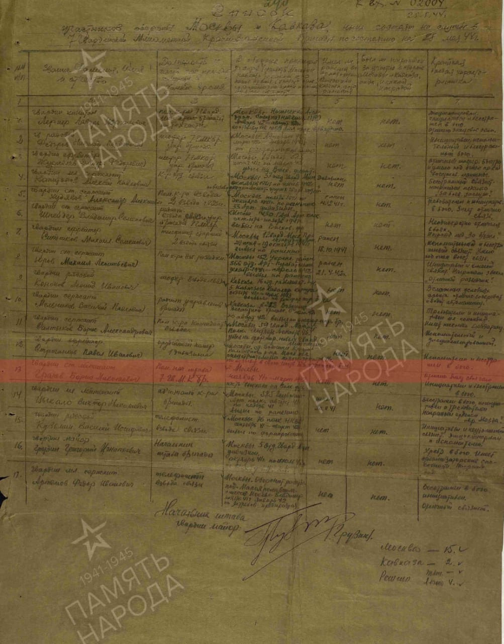 Мой прадед Грачев Борис Николаевич родился 18 марта 1922 года в Малоярославецком районе Московской области, село Ильинское. Он - один из тех, кто воевал за отчизну, тот, кто был на фронте, принимал участие в боевых действиях и вернулся он живым, без ранений, с орденами и медалями. Еще до войны он поступил в артиллерийское училище. Когда началась война, его со второго курса училища направили на Ленинградский фронт в 7-ю гвардейскую миномётную Свирскую Краснознаменную орденов Суворова, Кутузова и Александра Невского бригаду. Где он был командиром разведки. Историй про войну мой прадед рассказывал очень мало, говорил, что это было слишком тяжелое время и совершенно не хотел об этом вспоминать. Но вот одна из тех, что он все же рассказал моей маме, когда она была еще ребенком и теперь она передала эту историю мне: Голод был страшный, есть было нечего, а у моего прадеда был наградной пистолет в котором не считались патроны. Он был награжден им за отличную стрельбу. Из-за отсутствия какой либо еды, ему приходилось убивать птиц, и его разведчики варили из них суп и только так все они были сыты. В 1943 году участвовал в Мгинской наступательной операции, после чего был направлен с той же бригадой в Карелию, где участвовал в Свирско - Петрозаводской операции. Со своей бригадой они дошли до самой Германии. Моего прадеда награди медалью «За оборону Ленинграда», медалью «За победу над Германией в Великой Отечественной Войне 1941 – 1945 год». Получил награду «За боевые заслуги», а так же был награжден орденом Отечественной войны II степени. Свои награды мой прадед получил за храбрость, стойкость и мужество, которое проявил в ходе боев с немецко-фашисткими захватчиками. Мой прадед и после войны остался на службе в Германии получил звание майор. Моего прадеда уже нет в живых, но наша семья никогда не забудет о том, что он и миллионы таких же солдат, воевавших тогда, спасли весь мир от фашизма и подарили нам мирное небо над головой! Мы помним героев и гордимся ими!