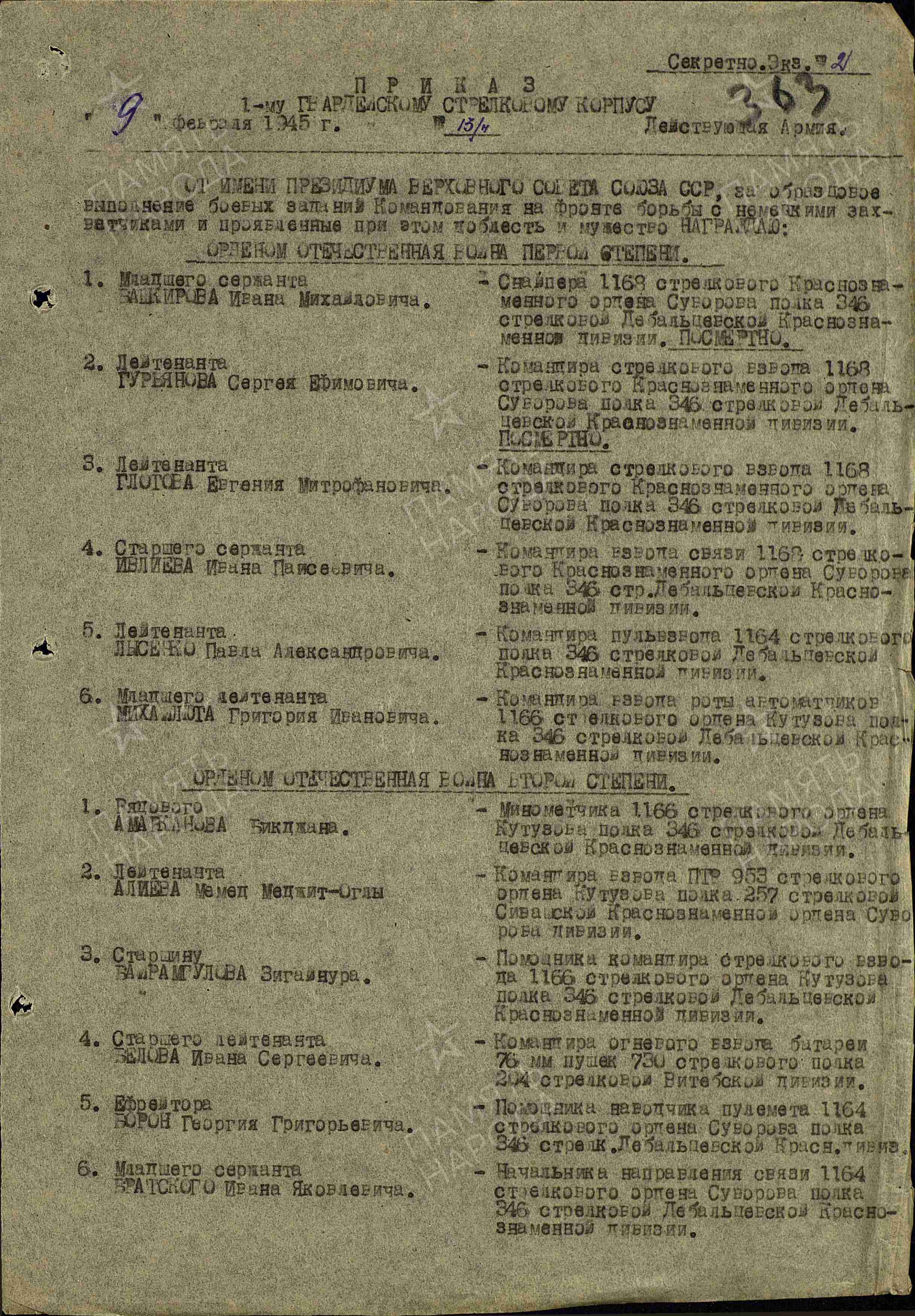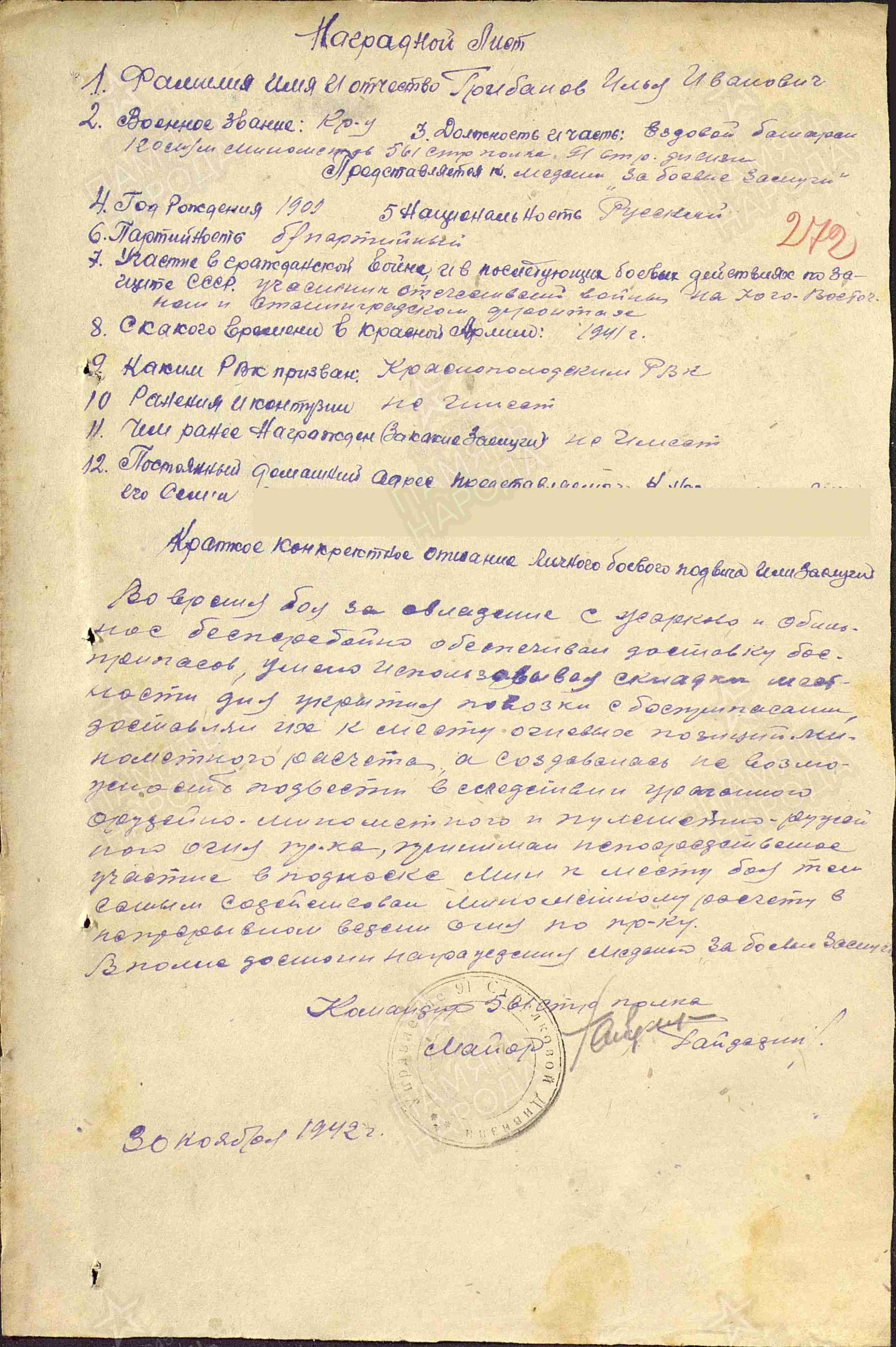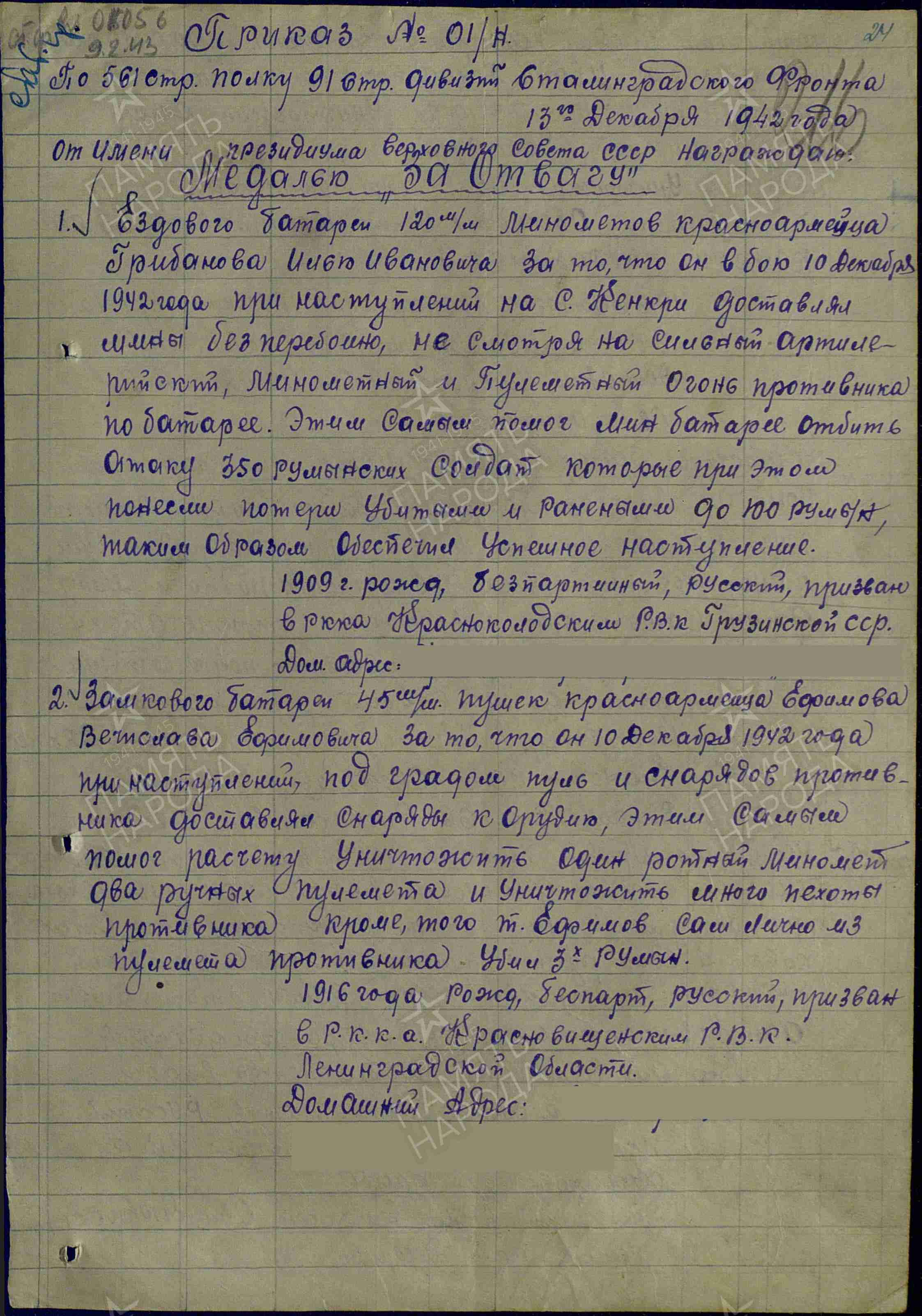Прадедушка Грибанов Илья Иванович родился в Грузии в 1909 году и прошел всю войну. Уходя на фронт, он дома оставил жену с тремя сыновьями и дочкой. Все они были совсем крохи. До начала войны он работал в совхозе трактористом. По воспоминаниям бабушки: мой прадед был человеком добрым, справедливым, всегда отстаивал правду. Никогда не отказывал в помощи. От своих родителей унаследовал такие качества, как трудолюбие, твердость характера. Был хорошим охотником и рыболовом. Ведь его родная деревня расположена в самых живописнейших местах Грузии. Он воевал с самых первых дней войны 1941 года сначала на Юго-Восточном, Сталинградском фронтах, далее на Западном фронте, Украинском и Прибалтийском фронтах. Дважды был ранен первый раз в далеком 1943 году на Западном фронте, второй раз в 1944 году на 4-м Украинском фронте. Был награжден многими медалями такими как «За отвагу», «За боевые заслуги», орденами «Красного Знамени», «Отечественной Войны 2 степени» и многими другими, о чем свидетельствуют приложенные выкопировки документов и фото моего прадеда