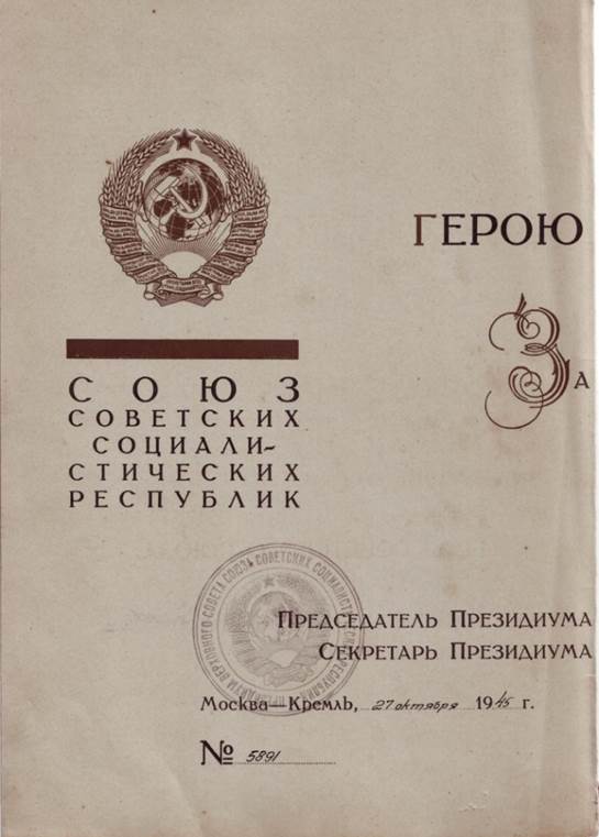Ему присвоено звание Героя
