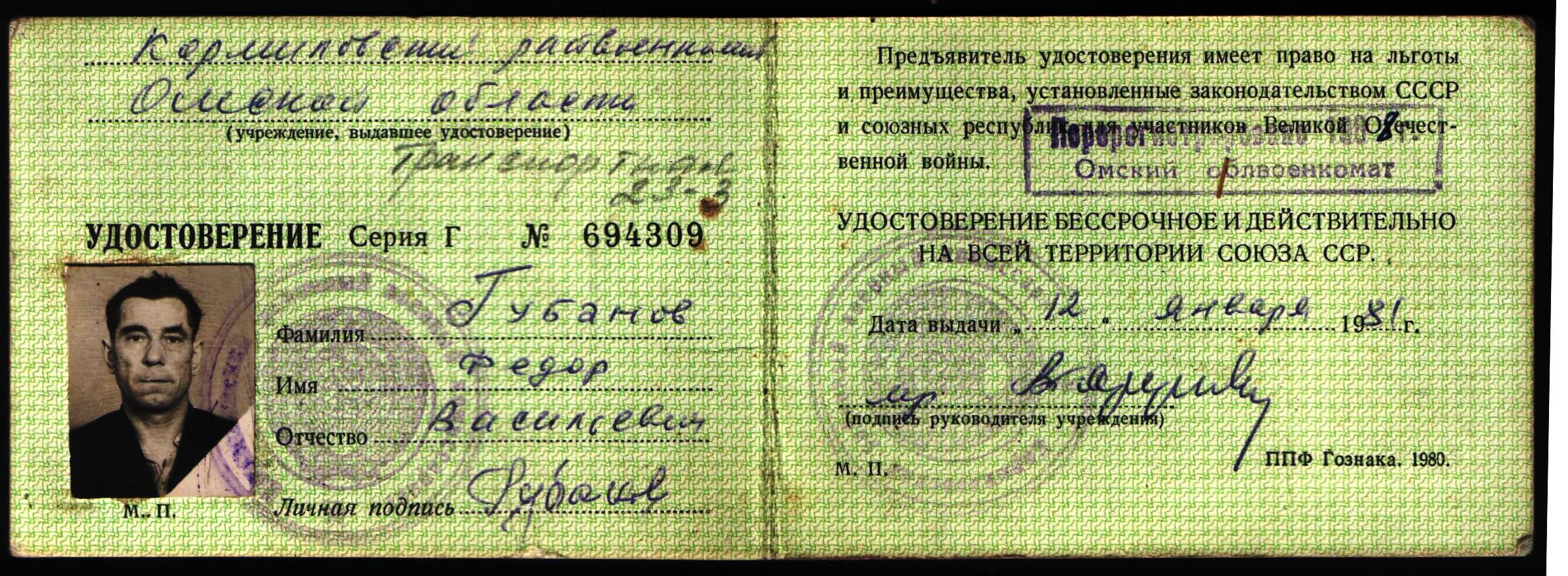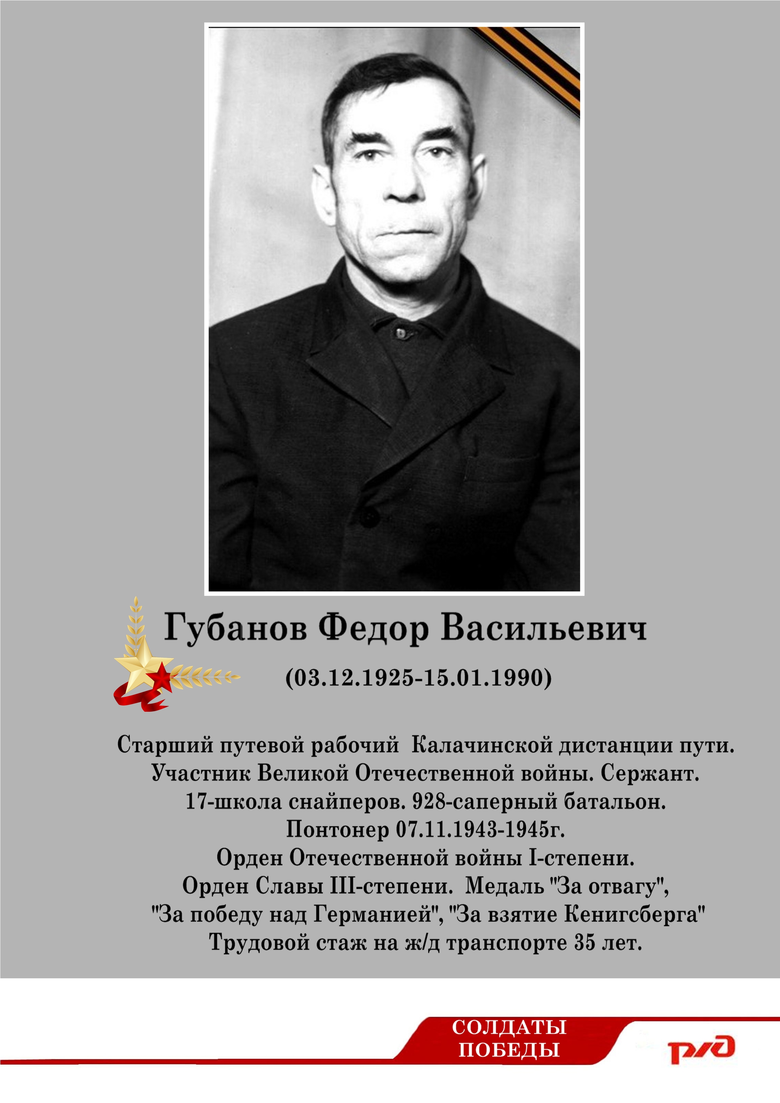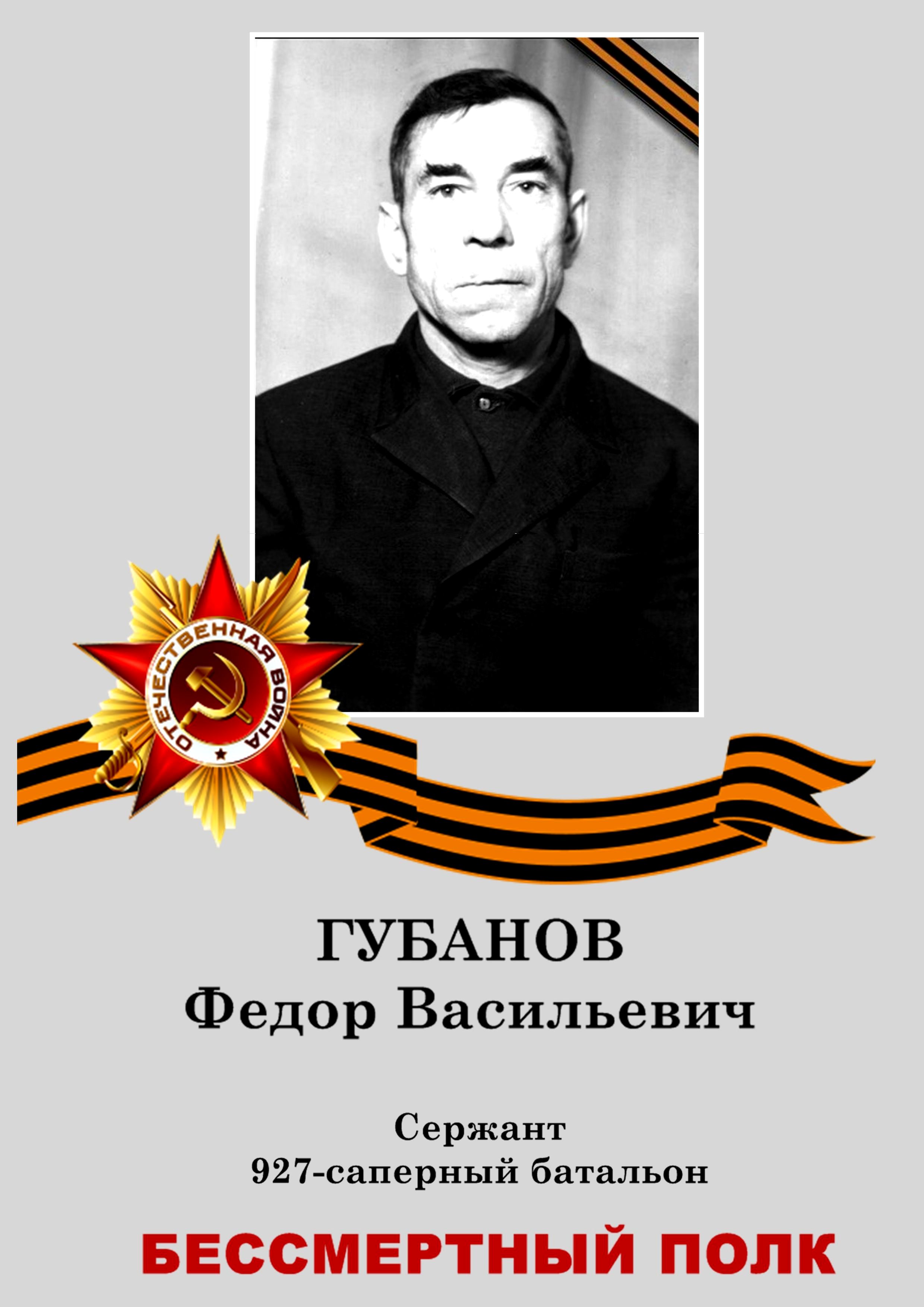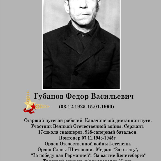 ГУБАНОВ ФЕДОР ВАСИЛЬЕВИЧ- (03.12.1925-15.01.1990) Участник Великой Отечественной войны. Закончив 17-ю окружную школу