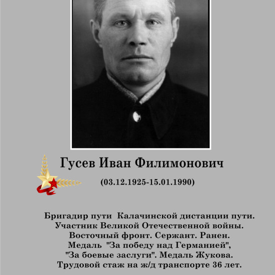 ГУСЕВ ИВАН ФИЛИМОНОВИЧ-(1927-1990) Участник Великой Отечественной войны,