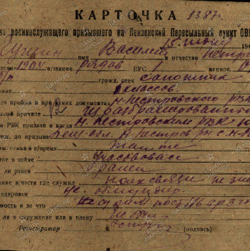 В РККА по архивным документам был призван в 1942 году. По имеющимся сведениям закончил войну в Германии. Имел ранение. Состоял в батальоне связи. По некоторым сведениям был участником похоронной команды. Получил за участие в ВОВ 2 медали: За отвагу и За победу над Германией в ВОВ. Медаль За отвагу получил в г. Ворау на территории современной Австрии 18.06.1945: "... в ночное время под огнем противника исправил 5 повреждений на линии в ответственный период сильного боя". Медалью За победу над Германий в ВОВ награжден 11.08.1945 в г. Нойзальц, недалеко от г. Дрезден. После войны вернулся к жене и двум детям в г. Киров где и скончался в 1957 году.
