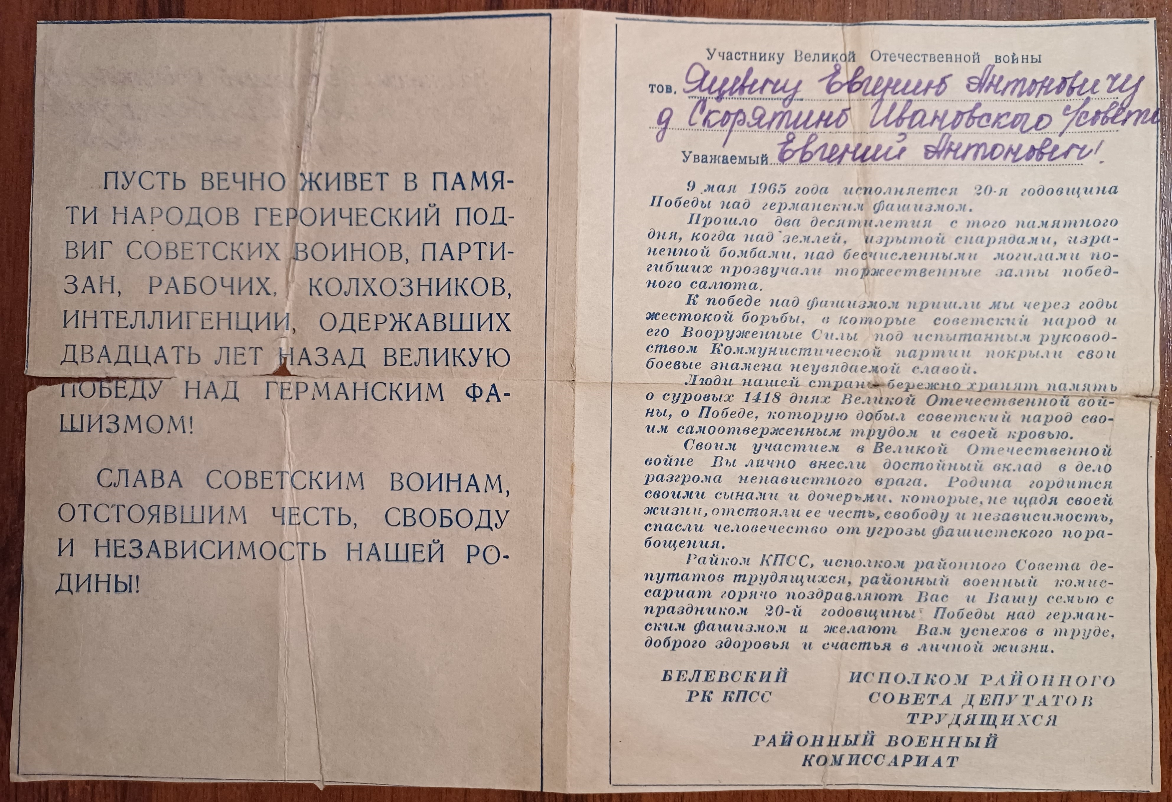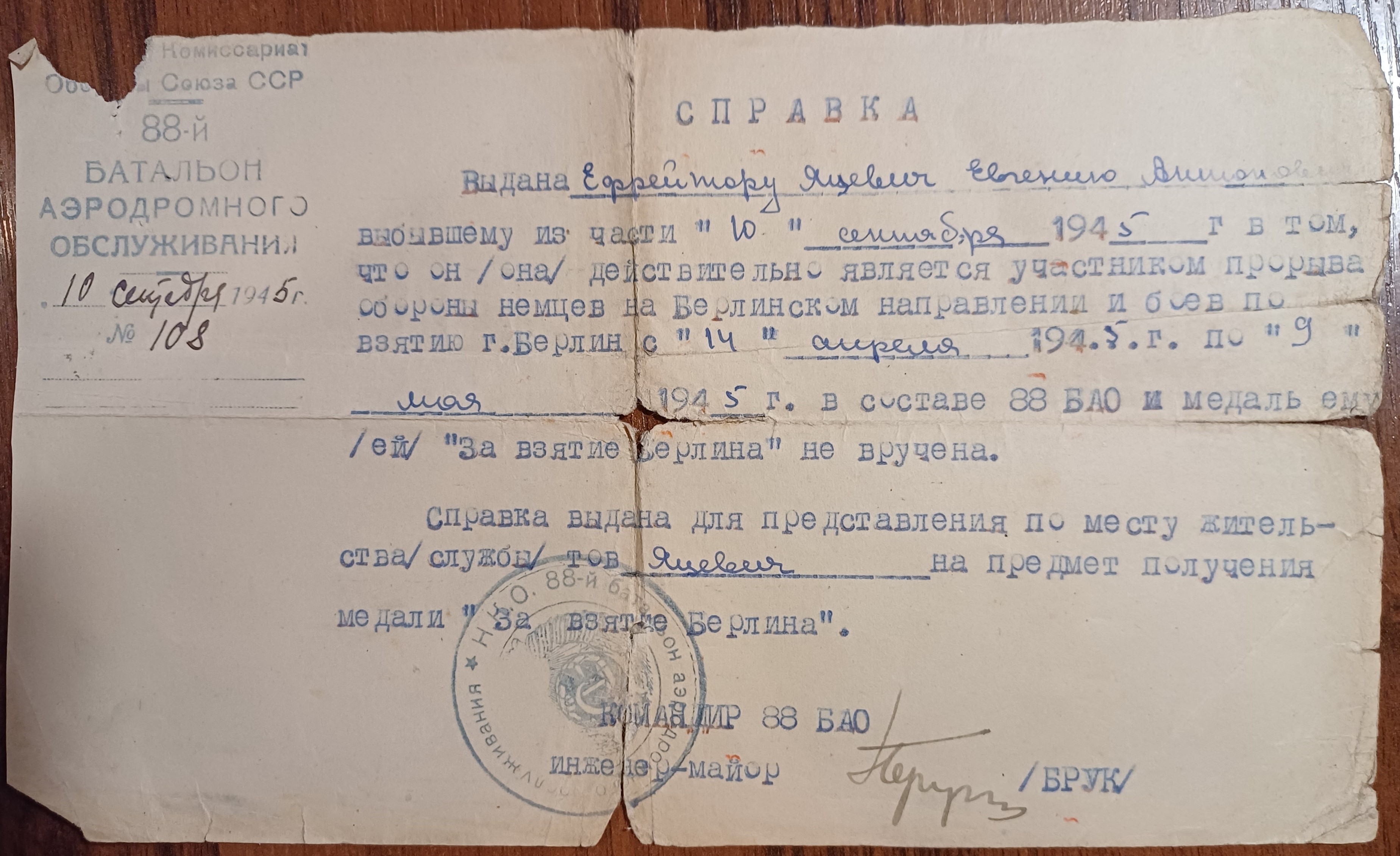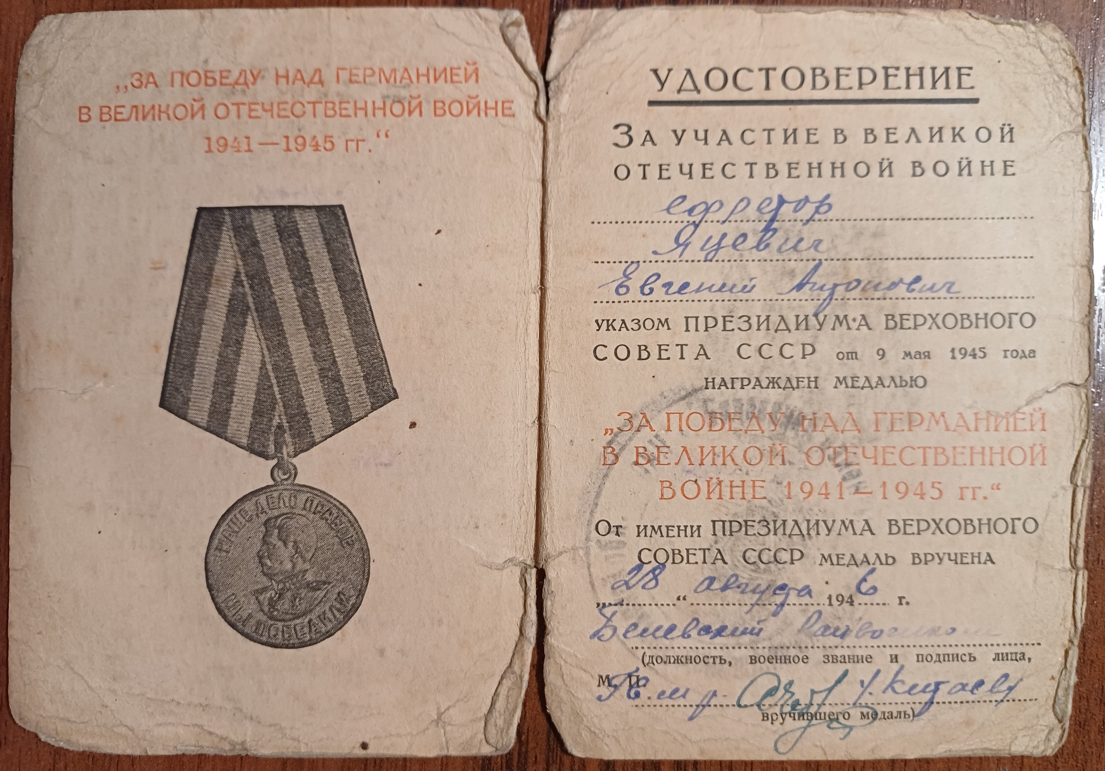 Яцевич Евгений Антонович Старший сержант. 88 батальон аэродромного обслуживания. Дата рождения: 07.01.1903 в Беларуси. Дата смерти: 31.08.1975 в Туле. Евгений Антонович прошел всю войну — с трагического 1941 года до победного мая 1945-го. За его плечами остался адский путь длиной в четыре года, но самыми страшными вехами на этом пути стала сталинградская битва. Именно там, в пекле Сталинградской битвы, с ним случилось чудо, которое иначе как милосердием Божьим не назовёшь. Он лежал среди погибших — бездыханный, холодный, вперемешку с телами своих товарищей. Солдаты, с которыми он делил последний паёк и последнюю обойму, были уверены, что он навсегда остался на этой пропитанной гарью земле. Однако сквозь гул канонады и мёртвую тишину поля боя вдруг раздался слабый стон. Он застонал, и поэтому его успели вытащить из-под груды мёртвых тел. Так жизнь победила смерть в самый последний момент. Раны оказались ужасающими. Евгений Антонович был серьёзно ранен: в ходе ожесточённых боев он потерял глаз, а его голова была буквально пробита двенадцатью осколками. Врачам пришлось творить настоящие чудеса хирургии — они сделали сложнейшую пластику лица, собирая его черты по кусочкам. Но даже находясь на грани жизни и смерти, солдат не сломался. Едва госпиталь отпустил его, залечив самые страшные раны, Евгений Антонович снова встал в строй. Он не искал лёгких путей и не прятался за спинами других — он пошёл воевать дальше, чтобы добить врага в его собственной норе. Он участвовал в освобождении Варшавы, чувствуя, как под его сапогами трещит европейская брусчатка, которую топтал враг. Примечательно, что среди ужасов войны он сохранил ясный ум и поразительное знание немецкого языка. Именно ему доверяли самые ответственные допросы: когда захватывали «языков», Евгений Антонович переводил показания высокопоставленных немецких военнопленных, помогая нашей армии двигаться вперёд. И он дошёл. Дошёл до логова зверя — до Берлина. Он увидел поверженный Рейхстаг и рушащуюся на глазах империю, которая хотела уничтожить его страну. И хотя далеко не все ордена и медали нашли своего героя (многие награды так и остались лишь записями в наградных листах, потерянных в штабной суете), самая главная награда уже была у него в кармане — это жизнь, которую он отстоял среди мёртвых, и Великая Победа, до которой он сумел дойти.