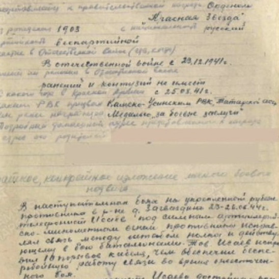 Боевой путь ветерана 25.08.1941 был призван на службу Камско-Устинским РВК ТАССР, вернулся в 1945 в родное село Антоновка Камско-Устинского района, где прожил всю оставшуюся жизнь до 97 лет.