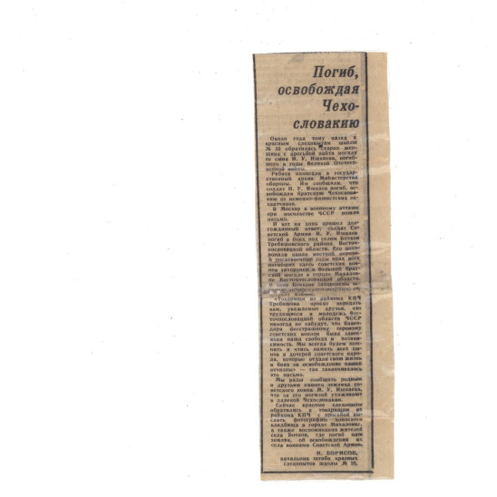 Родился в 1924 году. Место рождения Прииск Балканы Нагайбакского р-на. До войны работал на руднике горным мастером в Магнитогорске. Имел бронь.Был призван в мае 1944 года и направлен в Харьков, где готовили воздушных стрелков. Воевал всего месяц в 1339 СП 318 СД.Погиб при прорыве обороны противника в районе с. Даргов (Чехословакия)22 декабря 1944 года. Проявил себя как бесстрашный пулемётчик. Представлен к награждению орденом Славы III степени. Захоронен в Братской могиле в г.Михаловце (Чехословакия).
