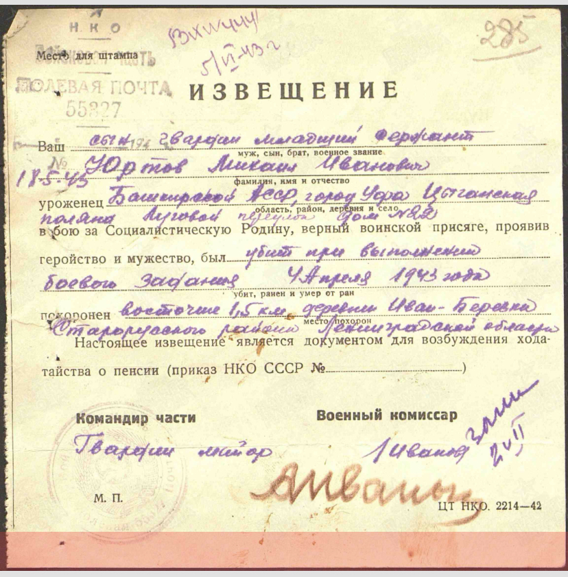 До Великой Отечественной Войны проживал с родителями на Цыганской поляне в Ждановском (ныне Кировском) районе г.Уфа на переулке Луговой 25. Был призван Ждановским РВК г.Уфа Башкирской АССР в 1941 году в возрасте 18 лет. Погиб при выполнении боевого задания 04.04.1943 года. Был похоронен в 1,5 км от деревни Иванова Берёзка Старорусского района Новгородской области. После ВОВ перезахоронен в братскую могилу у д.Байново в 22 км от г.Старая Русса Новгородской области.
