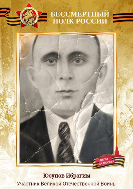 Ибрагим Юсупов (1914-1974) работал таксистом в Москве. Был женат на Хадича, у них родилось трое девочек, младшая из которых в 1941 году умерла. В 1941 году началась Великая Отечественная Война. Ибрагим ушел в очередной раз на войну защищать родину. Ранее был участником в Японско-Финской войне. Ибрагим вернулся после войны в 1945 году в родную деревню Татхадяшево Пестречинского района. Потом уехал на заработки. Умер в 1974 году в возрасте 60 лет.