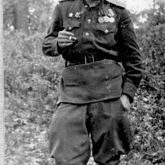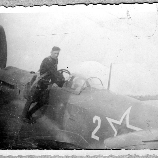 Сплошная густая дымка поднималась от земли и до высот 2000 м. С воздуха было трудно вести ориентировку и определить расположение своих войск. Наш полк работал в районе севернее Берлина начиная от его окраины. В воздухе в один из вылетов встретили группу- восемь американских самолетов "Мустанг". Разошлись левыми бортами, встали в левый разворот и настороженно пронаблюдали за их действиями, союзники союзниками, а как бы чего не выкинули снова. В последних числах, 27-28 апреля наш полк сел на аэродроме Дальгов, западнее Берлина 3-4 км.,недалеко от его пригородов. Это был немецкий экспериментальный аэродром. В ангарах мы увидели 2 турбореактивных самолета "МЕ-262" и один реактивный истребитель "МЕ-163" с жидкостным реактивным двигателем. Какой то из них несколько дней назад был в полете и появлялся над Берлином. В воздухе на немецких истребителях начали появляться летчики, наспех переученные с самолетов бомбардировщиков и транспортных. Некоторые асы с железными крестами предпочли заранее податься на аэродром к американцам и англичанам. В эти дни и подвернулся мне очевидно такой, наспех подготовленный летчик, в его действиях угадывалась неопытность. Это была последняя моя победа, двенадцатая. 2 мая 1945 года только начинало светать, нас разбудили разрывы и автоматные очереди. Домики на границе аэродрома в которых мы жили,вздрагивали от разрывов мин. Встали по тревоге, через несколько минут были у самолетов. Командир полка доложил обстановку: "Немецкие части стремятся вырваться с центра Берлина и уйти на запад". Вышли как раз на наш аэродром. Следует короткий приказ: "После взлета весь боекомплект выпустить по наступающим (или правильнее по удирающим) немцам, посадка на соседнем аэродроме". Взлетаем, отыскиваем скопления темных фигурок посреди улицы и прилипших к стенам домов и длинными очередями выпускаем по ним весь боекомплект. Технический состав и аэродромная служба заняли оборону на аэродроме. Штаб нашей дивизии уже доложил обстановку выше. Подошли наши танки. Путь к отступлению был отрезан. А к 15.00 этого же дня все части в Берлине прекратили сопротивление. На другой день мы вернулись на аэродром и увидели на прилегающих к аэродрому улицах массу трупов немецких солдат. До настоящего времени в памяти отчетливо вспоминается: у ангара немецкий солдат разорванный на две части, в своей мрачной каске и кованных сапогах. Многие из технического состава за смелость проявленную в этом бою были награждены медалями и орденами, в том числе и две девушки оружейницы. Этот вылет 2 мая оказался последним боевым вылетом. Война окончилась. Мы стояли у самолетов, смотрели друг на друга, совсем как то по иному, и улыбались. И становилось грустно когда вспоминали своих друзей летчиков, совсем немного не доживших до этого дня. В этот день я чувствовал одновременно радость и гордость за то, что я родился в Советской стране и что я ее полноправный гражданин. Умер 13.03.1995г.