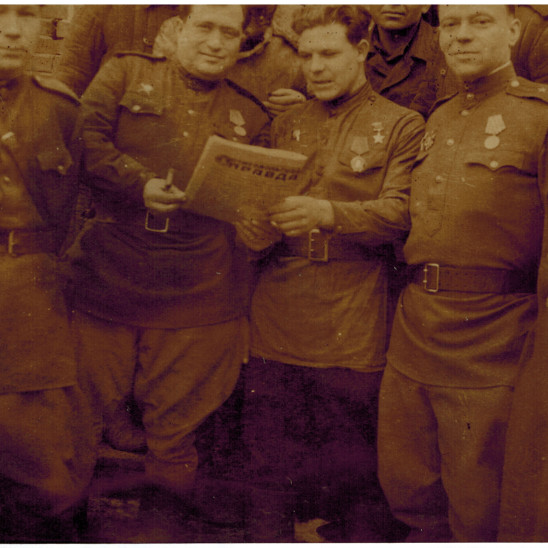 В нашем семейном архиве есть фотография, сделанная 8 сентября 1943-го года в городе Середина-Буда. На обратной её стороне имеется следующая надпись: «Здесь запечатлён наш въезд в этот тихий украинский городок. Снимок сделан прямо при въезде в город после 130-тикилометровой неимоверно пыльной дороги». На фотографии пять офицеров с запылёнными тёмными лицами, но широкими белозубыми улыбками. Много километров, по всей видимости, в том месяце ещё предстояло им проехать.