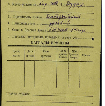 01.11.1941 г. вместе с красноармейцем Синеговским под пулеметно-минометным огнем заминировал дорогу СОФЬИНО-ПОПОВКА, на минах подорвалась бронемашина противника.