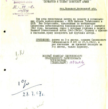 Кель Михаил Тобиасович был призван по мобилизации Славянским Райвоенкоматом 2 сентября 1941 года.