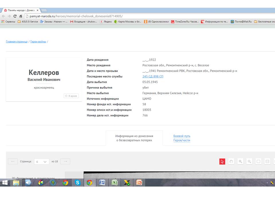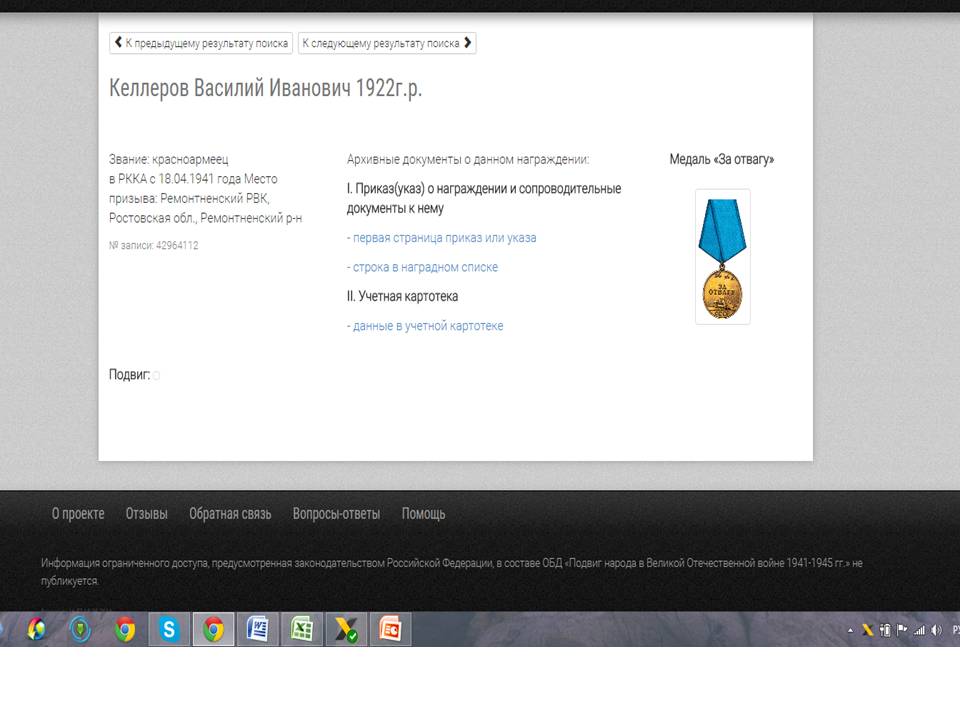 полку. 15 ноября 1946 г. демобилизовался Дважды был в плену. Получил медаль за отвагу №3640247, орден отечественной войны №2749622,