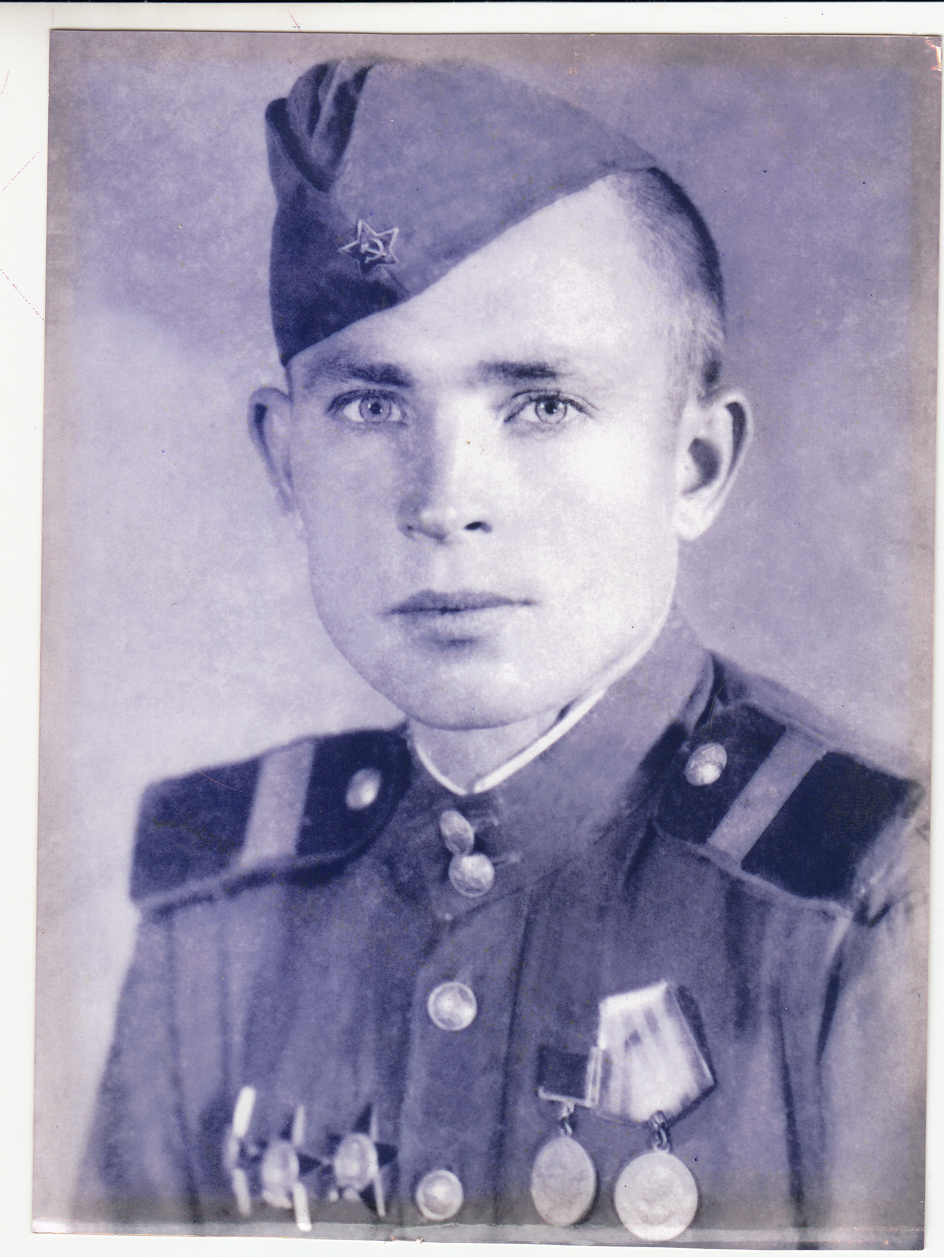 Призван в ряды Советской Армии в 1942 году. В 1943 году в период боя быстро и бесперебойно прокладывал связь и устранял повреждения на линии за что и получил медаль ""За боевые заслуги". 18.07.1944 г. в период боя управлял отделением связи, обеспечил бесперебойное управление огнем дивизиона, лично сам выходил на линию и устранял до 20 прорывов. 17.08.1944 г. под сильным арт.мин. огнем противника дал бесперебойную связь КП и АП командира дивизиона и устранил до 15 порывов линии. 26.08.1944 г. под пулеметным и арт.минометным огнем проложил связь через реку Раданка, тем самым обеспечил управление огнем дивизиона, в результате чего дивизион уничтожил до 30 солдат и офицеров, отражено 2 контр атаки противника. Во время боев на плацдарме западнее р.Одер и в боях за Берлин умело расставил связь, благодаря чего связи наблюдательного пункта с батареей была бесперебойной и дал возможность вовремя поддерживать наступающую пехоту для продвижения вперед. За день боев 27.04.1945 г. им было связано 31 порыв линии связи под огнем артиллерии противника