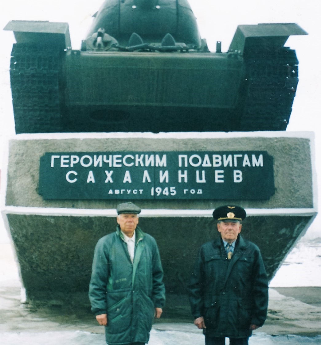 Китаев Абдурахман Фетяхович (Андрей Федорович) род. 23. 06.1921г., с.Татьюнки Тарбеевского р-на Мордовской АССР. В семье росли шестеро братьев, воспитанием которых занимался отец, так как мать умерла рано. В 1938 г. Китаевы переехали в Узбекистан, в г. Коканд. В 1940 г. Андрея призвали на срочную службу в ряды Красной Армии. Попал в 240-ой стрелковый полк, расквартированный в Куйбышеве. Осенью этого же года переведен в Ульяновск, в походно- авиационные ремонтные мастерские. 22 июня 1941 г. полк располагался в летних лагерях когда сообщили о сборе. Так Андрей узнал, что началась война. Часть срочно перебросили в г. Мелекец, где формировалась 336-я дивизия. Китаева распределили в 909-й артполк 336-й дивизии 1-го Украинского фронта. Мощным натиском враг подходил к Москве. Бились за каждый клочок земли, за столицу , за Родину. Военная должность бойца Китаева-артиллерийский разведчик. Его обязанности- не дать догадаться вражеской авиации об истинном расположении наших частей, дезинформировать врага с помощью ложных артобстрелов. Первое ранение, госпиталь. В боях за Украину, при освобождении Львова - снова ранение. Третий раз его ранили уже в Польше, в 1944 г. С этим ранением Андрей прошел четыре госпиталя, победу встретил там -же. Был выписан в июне 1945 г. После выписки направили в учебный батальон 350-ой дивизии, обучать курсантов военному делу. За службу Родине Андрей награжден орденом Отечественной войны II степени, медалями "За отвагу", "За боевые заслуги" и другими наградами. К гражданской жизни Андрей вернулся в 1946 г. На остров Сахалин приехал в 1949 г. Работал на железной дороге. Проживал в селе Леонидово Поронайского района.