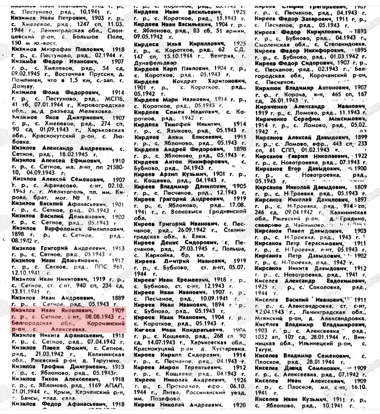 Родился в 1909 году в селе Сетное. Рабочий-механик. Был женат, имел троих детей. Призван на фронт в 1941 году. Был командиром отделения в звании младший сержант. В битве на Курской дуге был тяжело ранен 6.08.1943. На следующий день умер в хирургическом полевом подвижном госпитале №4347. Похоронен в селе Алексеевка Корочанского района в братской могиле.