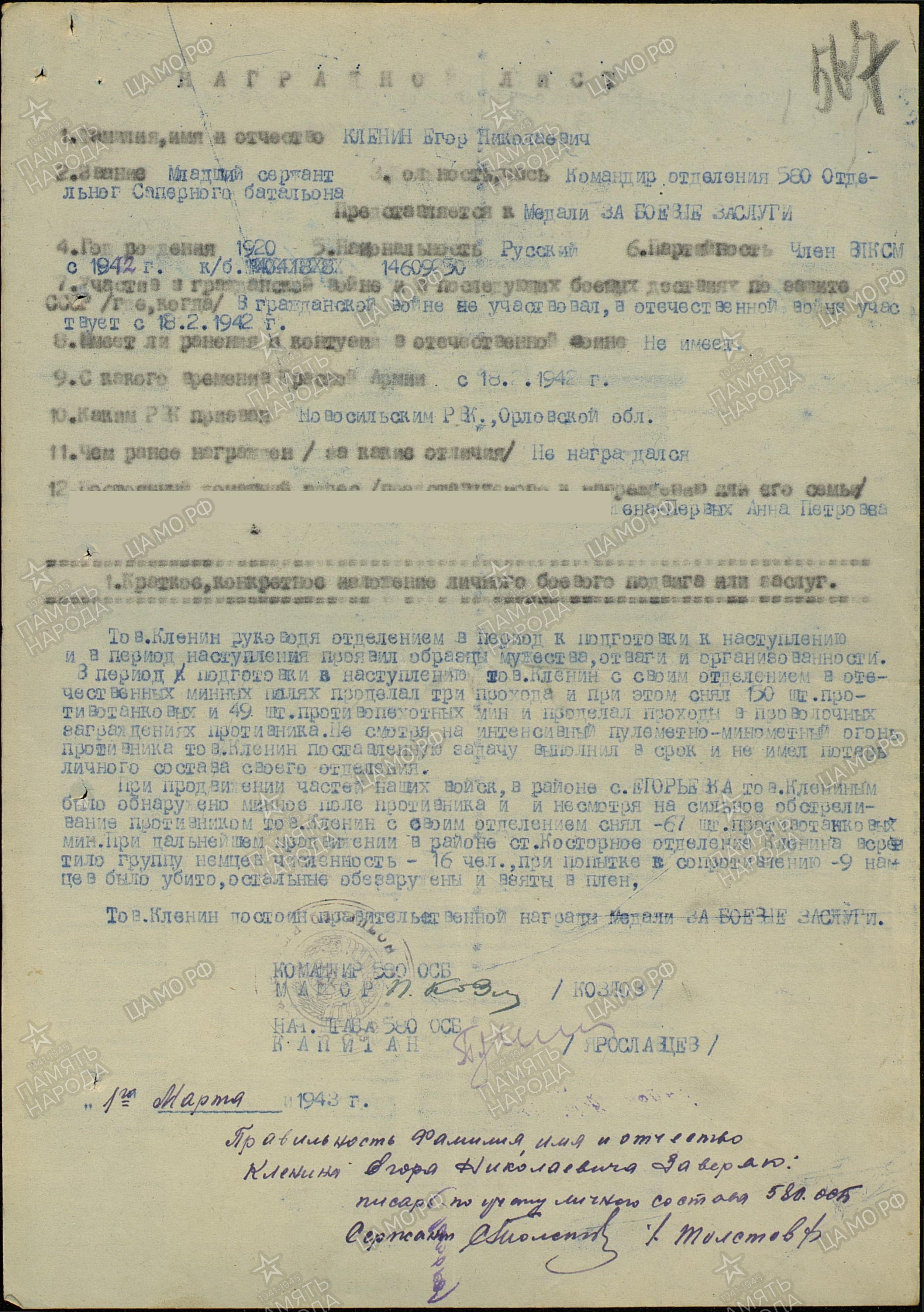 Место рождения: Орловская обл., Новосильский р-н, д. Чернышино
