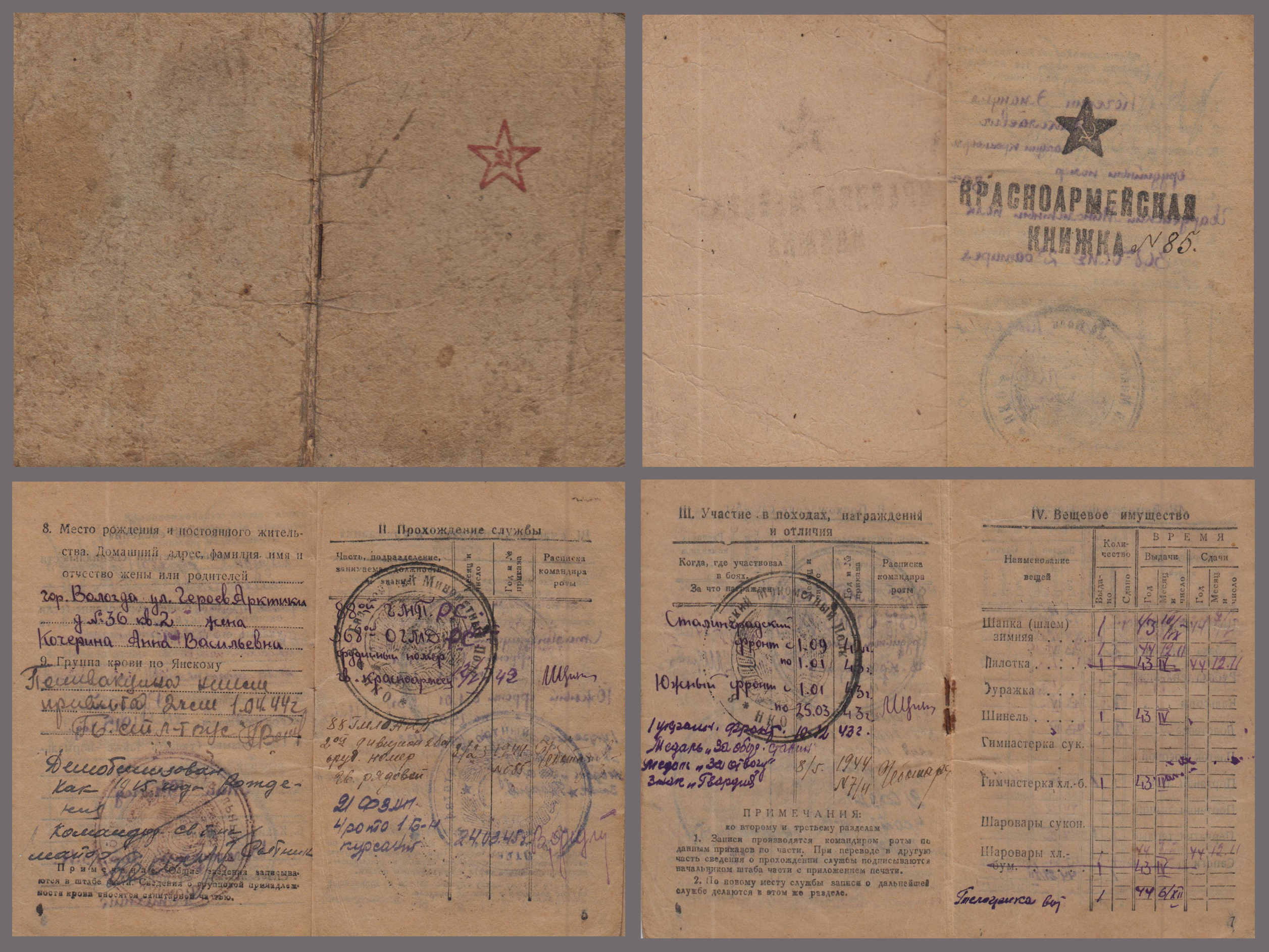 года в составе войск охраны культурных ценностей г. Дрездена.Сохранилась его красноармейская книжка № 85, выданная 01.07.1943 г.,