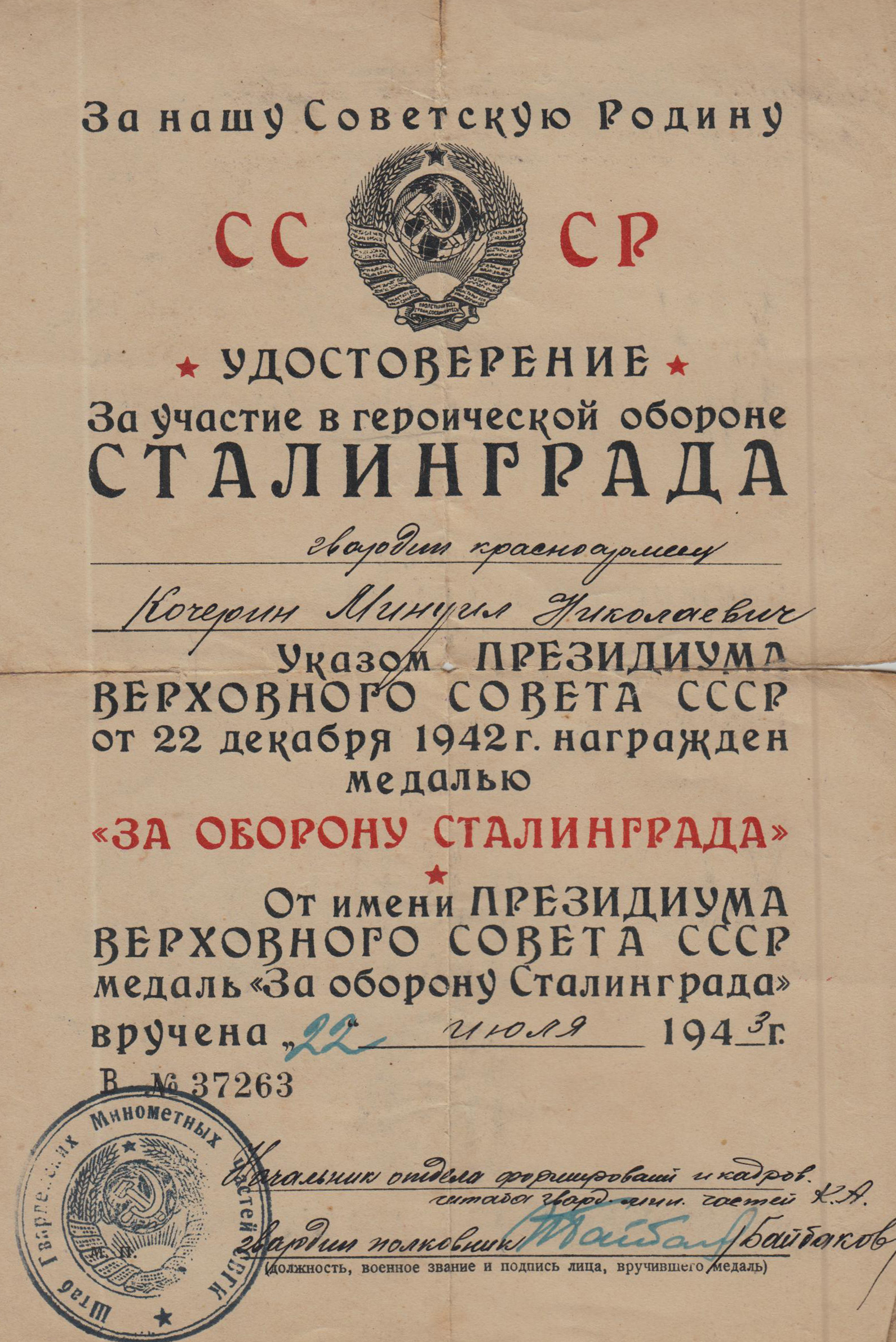 Воевал гвардии красноармеец Кочерин М.Н. на Сталинградском, Южном и Украинском