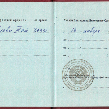 (орден Красного Знамени (или Звезды), комсомольский билет, билет кандидата в
