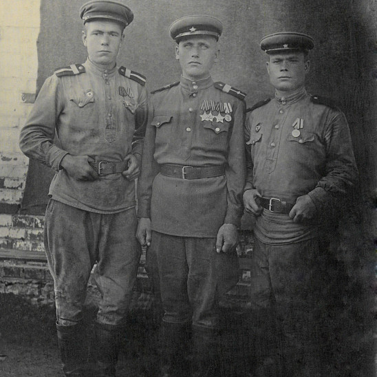 Сохранилось фото с его боевыми товарищами (экипаж танка), на которой написано: "Память друзей по службе в танковой части.