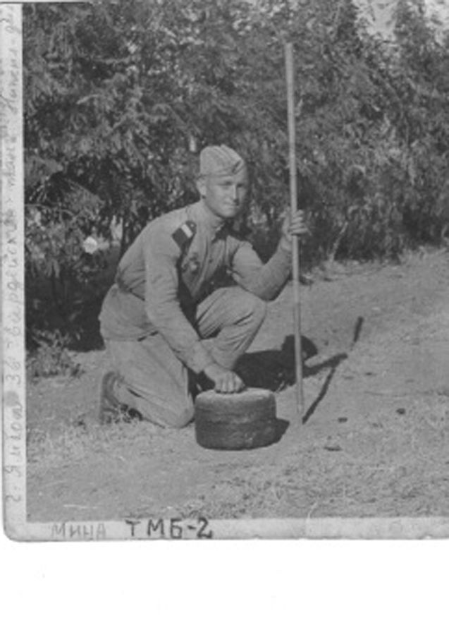 Имеет: медаль "За победу над Германией", значок "Отличный минер" и благодарность тов. Сталина "За окружение и разгром Сталинградской группировки".