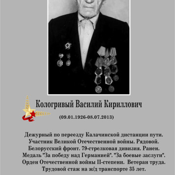 КОЛОГРИВЫЙ ВАСИЛИЙ КИРИЛЛОВИЧ-(09.01.1926-08.07.2013) Родился в деревне Городенка