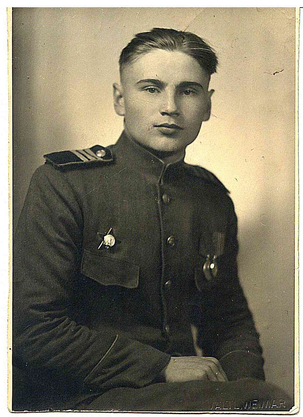 Призван на фронт в апреле 1943 г., Канский РВК. Звание мл. сержант, сержант. Механик-водитель танка Т-34 20-й танковой Седлецкой Краснознаменной бригады 11-го танкового корпуса 69-й армии 1-го Белорусского фронта (11-й танковый Радомско-Берлинский Краснознаменный, орденов Суворова и Кутузова корпус). Принимал участие в наступательной Берлинской операции. О войне не любил вспоминать. Ограничивался краткими фразами: нет ничего страшнее войны, кровь, увечья, смерть, после переправы осталось два танка. И всегда слезы на глазах. Ценил мир, справедливость, порядочность, сострадание. В мирное время: женился, построил дом, воспитал дочь и сына, видел взросление внуков, радовался правнучкам. Любил свою многонациональную страну.