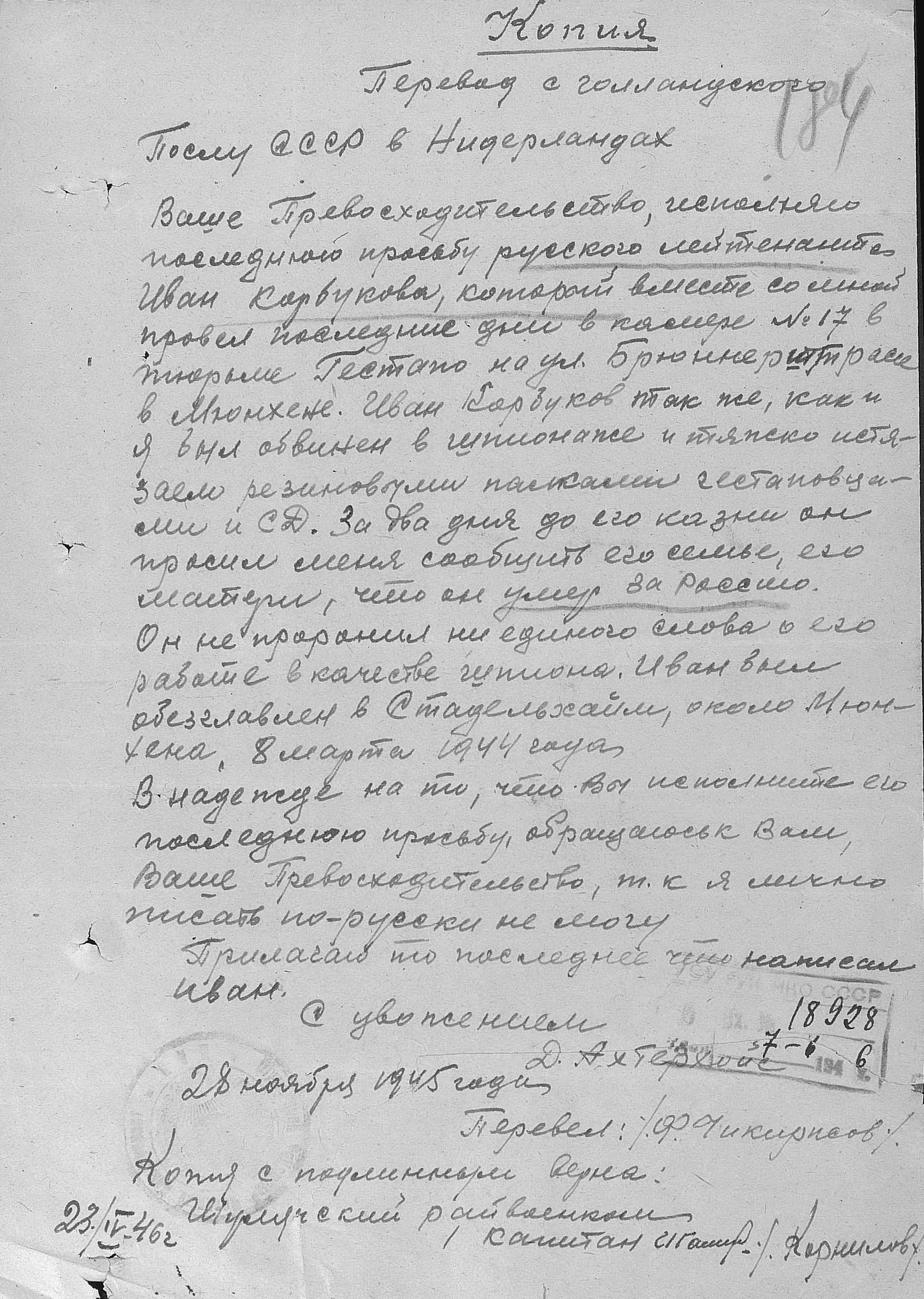 Мюнхене. Иван Корбуков так же, как и46я, был обвинен в шпионаже.