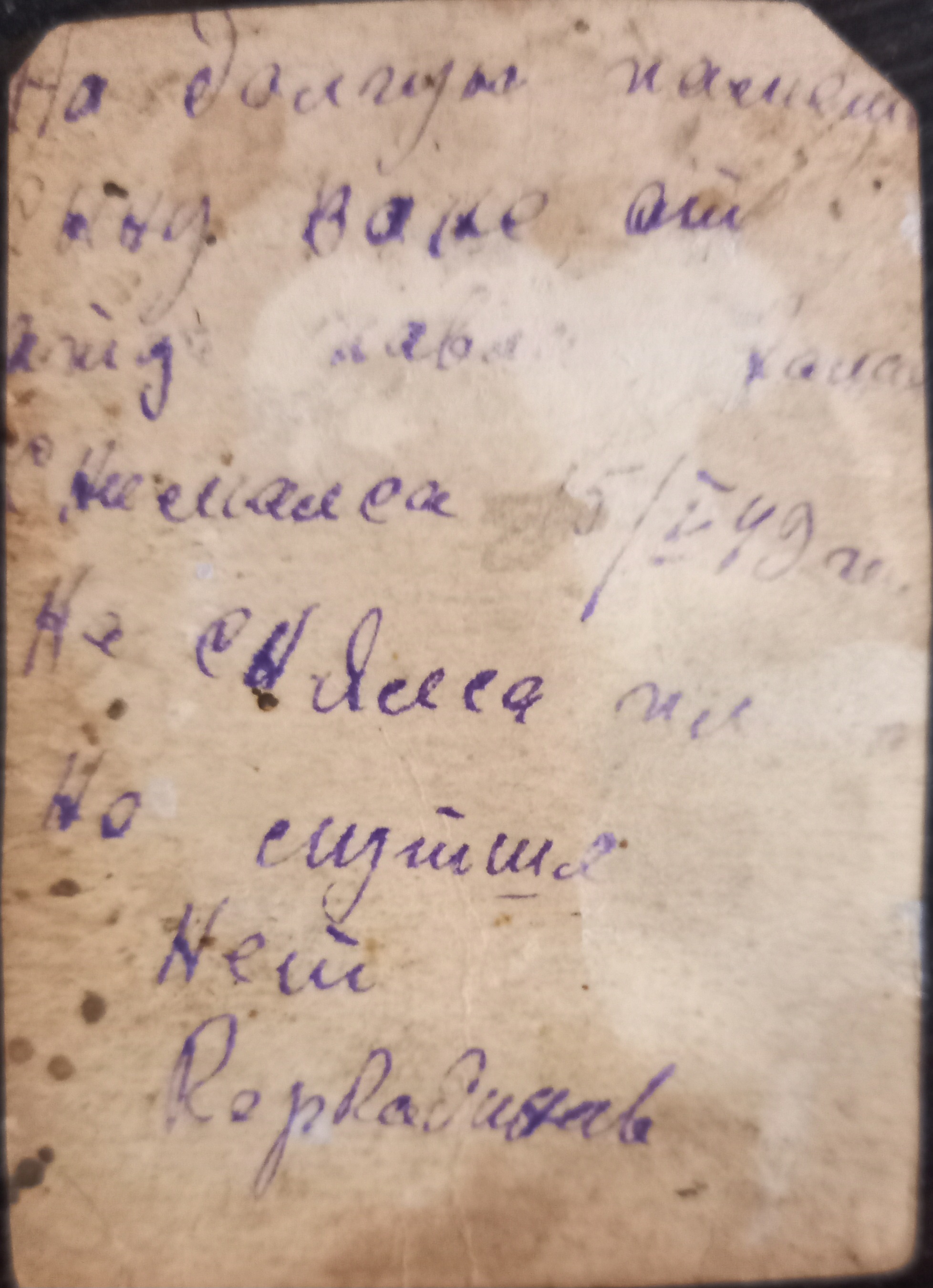 28.05.1941 был призван на фронт Добрянским РВК Молотовской (Пермской) обл Добрянского р-на Последнее место службы 4744 гап 112сд, воинское звание рядовой стрелок красногвардеец. Попал в плен, был освобожден. В феврале 1942г пропал без вести. В мае 1949г отправил фотокарточку со словами: "На долгую память сыну Ване от отца Николая Павловича. Снимался 15/05 1949г. Снялся плохо, но лучше нет. Коркодинов"
