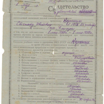 Корнюш Степан Иванович родился 26.12.1913 г. в многодетной семье, в д. Константиновка Куйбышевского района Новосибирской области. Был старшим ребёнком. С 1937 по 1938г. прошёл обучение на курсах ветеринарных фельдшеров при одногодичной колхозной школе техников-животноводов. В июле 1941г. был призван Куйбышевским РВК на фронт. В звании мл. лейтенанта командовал взводом 947 СП 268 СД.Погиб 01.10.1941г..Похоронен у реки Бол. Ижоры вблизи ст. Сапёрная Кировского района Ленинградской области.