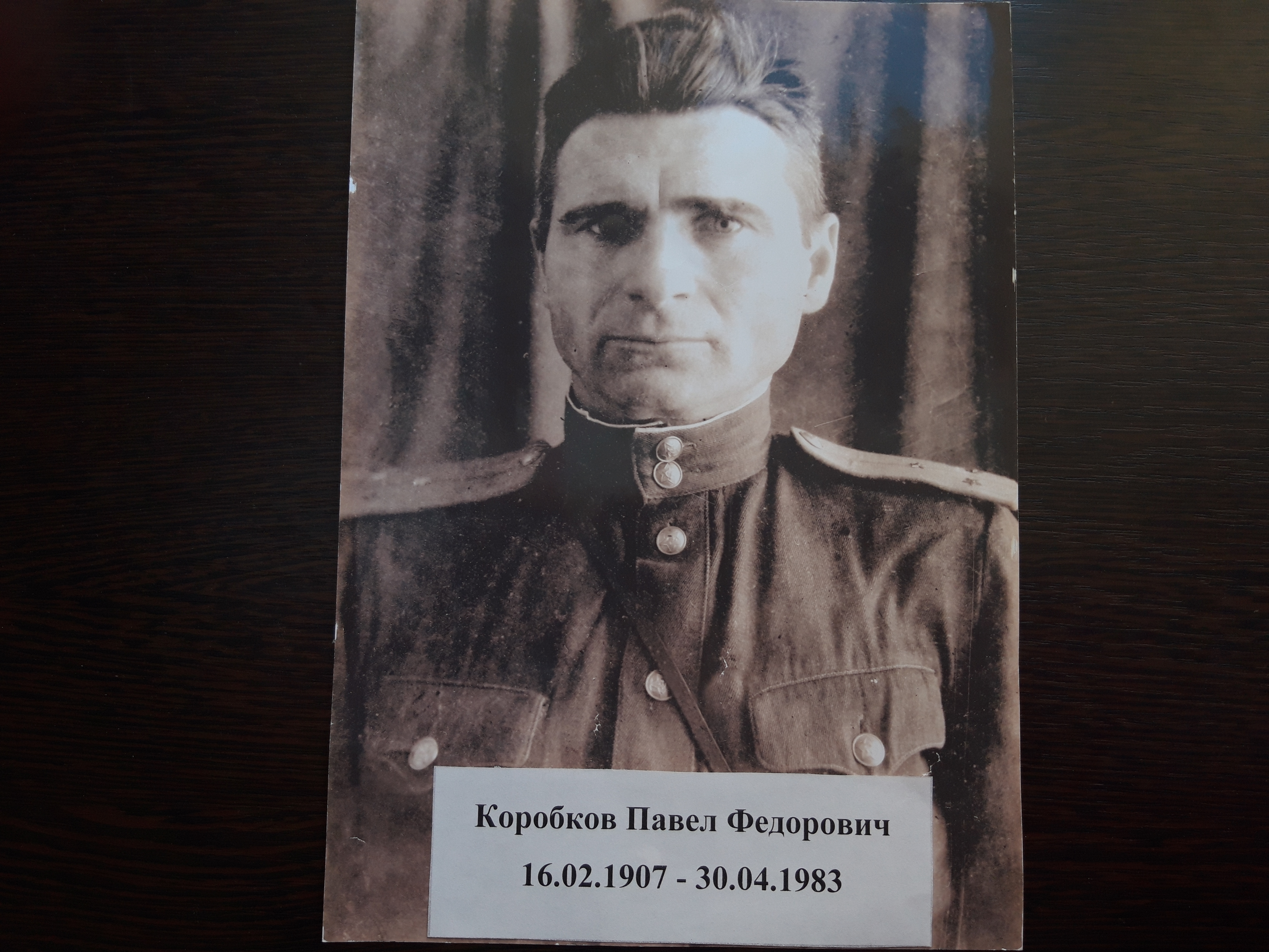Коробков Павел Федорович родился в городе Таганроге 16 февраля 1907 года. Окончив церковно-приходскую школу, вместе с семьёй переехал в с.Крутое, Колпнянского района, Орловской губернии, где 1924 году организовал комсомольскую ячейку и был её первым секретарём. Вместе с единомышленниками организовал ТОЗ (товарищество по обработке земли) и возглавил в с.Крутом комитет бедноты. В октябре 1929 года был призван в ряды РКК армии. В 1930 году стал членом ВКПБ. После демобилизации, в 1933 году переехал жить в Краснодарский край, где стал председателем колхоза в х. Малёванный. В январе 1934 года он женился, в 1939 году с семьёй вернулся на родину, где стал работать замполитом Веселовской МТС (машинно-тракторной станции) Таганрогского района. С 6 августа 1942 года, в звании старший лейтенант, он участвовал в Великой Отечественной Войне в должности военком батареи 1105 стрелкового полка 328 стрелковой дивизии Крымского фронта. В конце 1942 года был ранен и попал на лечение в госпиталь, в г. Тбилиси. После лечения был направлен на Северо-Кавказский фронт, в 37 армию, в 273 армейскую транспортную роту политруком взвода по обеспечению боеприпасами «Катюш». Бои шли по освобождению Тамани от фашистов. В связи с плохим состоянием ноги в конце 1944 года переведен в Амвросиевский РВК Сталинской области начальником 2-ой части. В 1947 году Коробков П.Ф. демобилизовался, вернулся к работе замполитом Веселовской МТС и стал её восстанавливать после войны. С 1949 года был переведен замполитом на восстановление Большкрепинской МТС Родионово - Несветайского района, которая в годы войны была полностью разрушена. В 1953 году переехал в станицу Выселки и работал директором пищекомбината. С 1952 по 1956 заочно окончил Краснодарский сельхозтехникум и получил специальность агронома. С 1957 по 1967 года занимался строительством и организовывал работу свеклопунктов на станциях Порошино, Ново-Титоровской, в Приморско-Ахтарске и г.Зернограде, откуда пошел на пенсию. До конца жизни он занимался общественно-политической работой и был награжден медалью «50 лет КПСС». 30 апреля 1983 года Коробкова П.Ф. не стало.