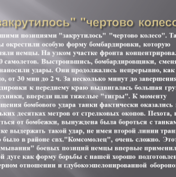 умело отбивала ожесточенные атаки, превосходящих сил пехоты, танков и авиации