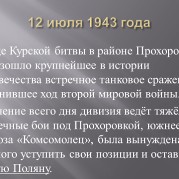Прохоровском сражении. В оборонительных боях на подступах к этому населенному