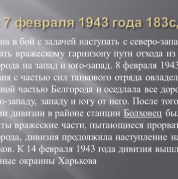 особенно в наступательных боях по освобождению городов – БЕЛГОРОД, ХАРЬКОВ.