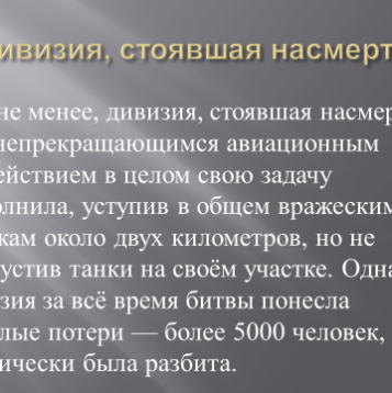 не пропустив танки на своём участке. Однако и дивизия за всё время битвы