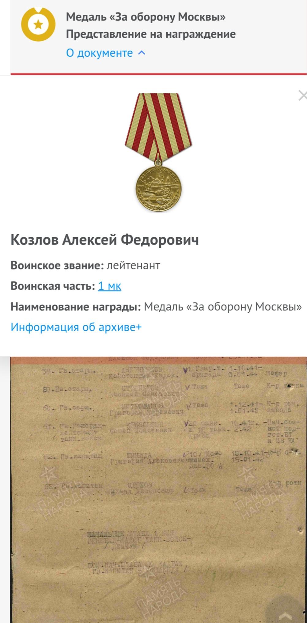 Мой дедушка сражался за Москву и был награждён медалью.