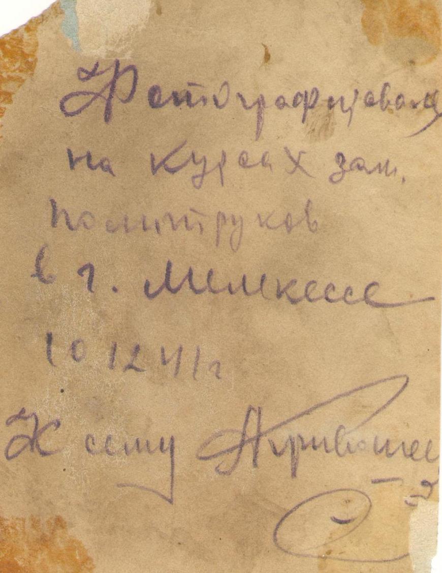Кривошеев Алексей Констанинович - мой дядя. Родился 1 октября 1923 года. Родители - Кривошеев Константин Иванович и Кривошеева (Пастбина) Мария Осиповна. Прошёл курсы зам. политруков в г. Мелекессе (фото в форме от 10.12.1941 г.) и добровольцем ушёл на фронт. Дата призыва в архивах указана 22.03.1942 г. Скорее всего, в Севастополь он попал из Новороссийска в составе подкрепления, которое доставлялось морским путём. Участвовал в героической обороне Севастополя в составе 388 стрелковой дивизии 778 стрелкового полка 1 мин.роты. На его долю выпало третье сокрушительное наступление фашистов с целью захвата города, которое началось в июне 1942 г. Это были дни самых ожесточенных и кровопролитных боев за город. Последнее письмо было написано им 9 мая, 10 июня, согласно почтового штампа, отправлено.