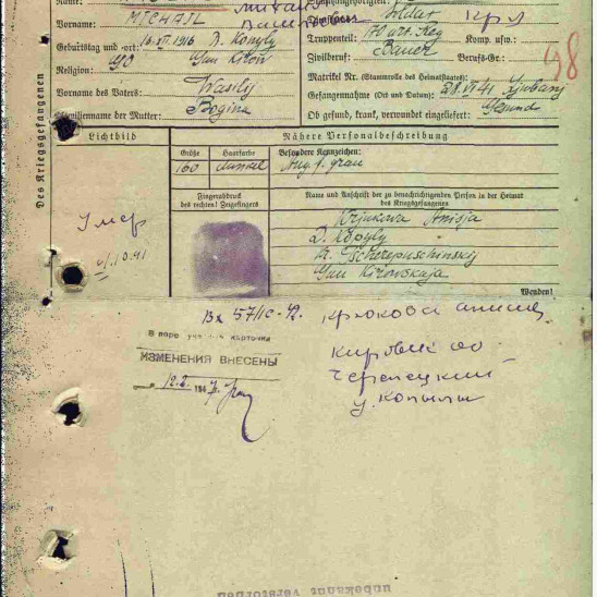 1916 г. р. из д. Закокуй Чернушинского с/с, красноармеец, Участник Советско-Финской войны Во время ВОВ артиллерист 1 гап 6 танк, бригады. Место пленения Любань. Лагерь шталаг XD (310), лагерный номер 40393. Умер 01.10.1941 Погиб в плену. Первичное место захоронения Витцендорф.