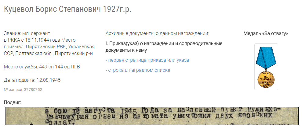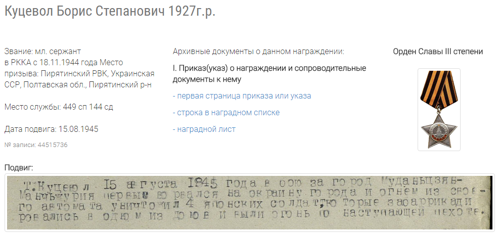 Активист, горячий и боевой. Участник ВОВ (144 дивизия, 449 полк) и Русско-японской войны.