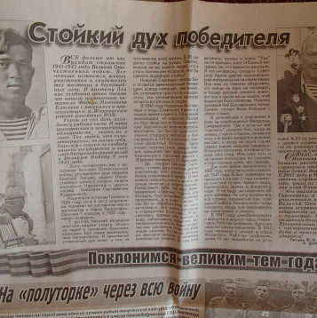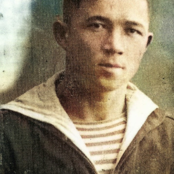 Кудашкин Николай Сергеевич (р. 12.12.1920 г. Чечено-Ингушская АССР, г. Грозный) был призван в ряды Советской армии в 1940 г. Первое время служил в 7-ой морской авиаэскадре. Вскоре моторист был зачислен в Краснознаменную Каспийскую военно-морскую флотилию, где быстро удостоился звания старшего матроса и был переведён в 397 отдельный десантный батальон морской пехоты. Здесь он получил своё первое боевое крещение при форсировании Керченского пролива вместе с 18 армией генерала К.Н. Леселидзе. Участвовал в боях за освобождение Феодосии, Симферополя. Воевал на боевом корабле "Морской охотник". Этот небольшой катер был вооружен глубинными бомбами, 45-миллиметровой пушкой и крупнокалиберными пулемётами. По морскому закону все члены экипажа владели всеми видами оружия. Так что моему дедушке не раз приходилось отражать атаки вражеских самолётов, кораблей и подводных лодок. В составе 397 десантного батальона морской пехоты брал вражеские позиции на Керченском полуострове в районе Тузлы. Был контужен и ранен (осколок остался в ноге). После окончания войны ещё два года плавал на катере-тральщике по Черному, Азовскому морям, Керченскому проливу в поисках вражеских мин, в очень сложных условиях под водой сам распутывал сети противника, в которые попадали винты катера. Сколько мин тогда обезвредили - не перечесть. Демобилизовался только в 1947 году.