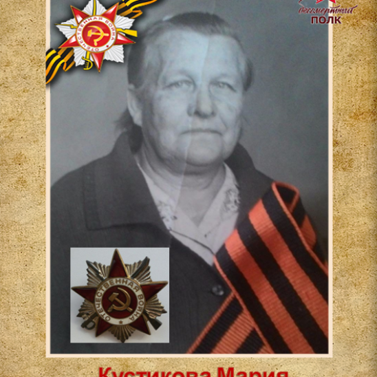 Мария Ивановна Кустикова, родилась в далеком 1920 году 7 января в селе Конячино Смоленской области. На второй день 22 июня 1941 года мою бабушку призвали на войну, потому что она окончила медицинское училище, ей