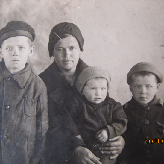 04.04.1945г. Похоронен в Чехословакии, с.Рагва. (На фото его семья: сын Александр во время войны был "сыном полка", жена Екатерина 1909г.р. (моя бабушка с дочерьми Ниной 1933г.р. и Галиной 1938г.р (моя мама) были угнаны в Германию в апреле 1945 освобождены и вернулись на Родину. (на отдельном фото его отец Александр.)