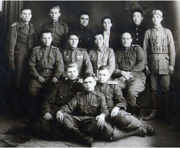 Мой дед стоит крайний слева (снимок сделан в день Победы над Японией.)Мой дедушка Кузнецов Тимофей Аверьянович, родился в семье пастуха крестьянского скота в селе (Жуликовка) ныне Калинино Поворинского района (Болашовской) ныне Воронежской обл. 20 марта 1903 года. До войны закончил 6 групп вечерней школы молодёжи в 1930 году. С 1926 по 1943 года работал на ЮВЖД от рабочего склада топлива МПС до начальника материального склада станции Поворино. В мае 1943 года мобилизован в Красную Армию в звании младшего лейтенанта. В марте 1944 с отличием закончил курсы