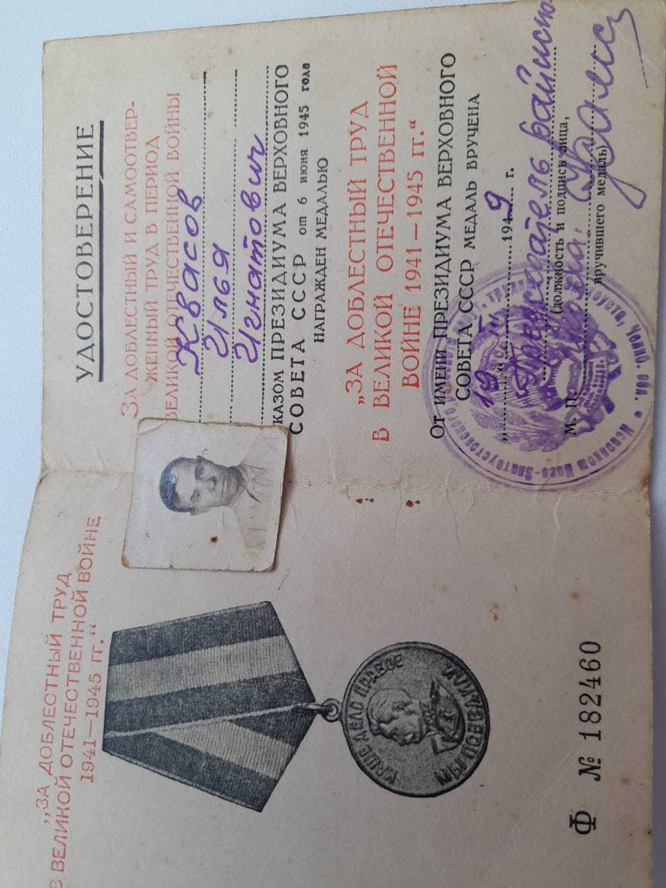 Заботливый муж, отец и дед. Во время Великой Отечественной войны работал в Уржумском заводе, это недалеко от г. Златоуст в сталелетейном цехе, награждён медалью " За доблестный труд " В 1949 г