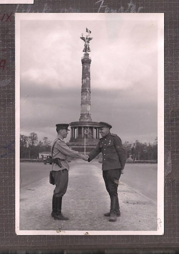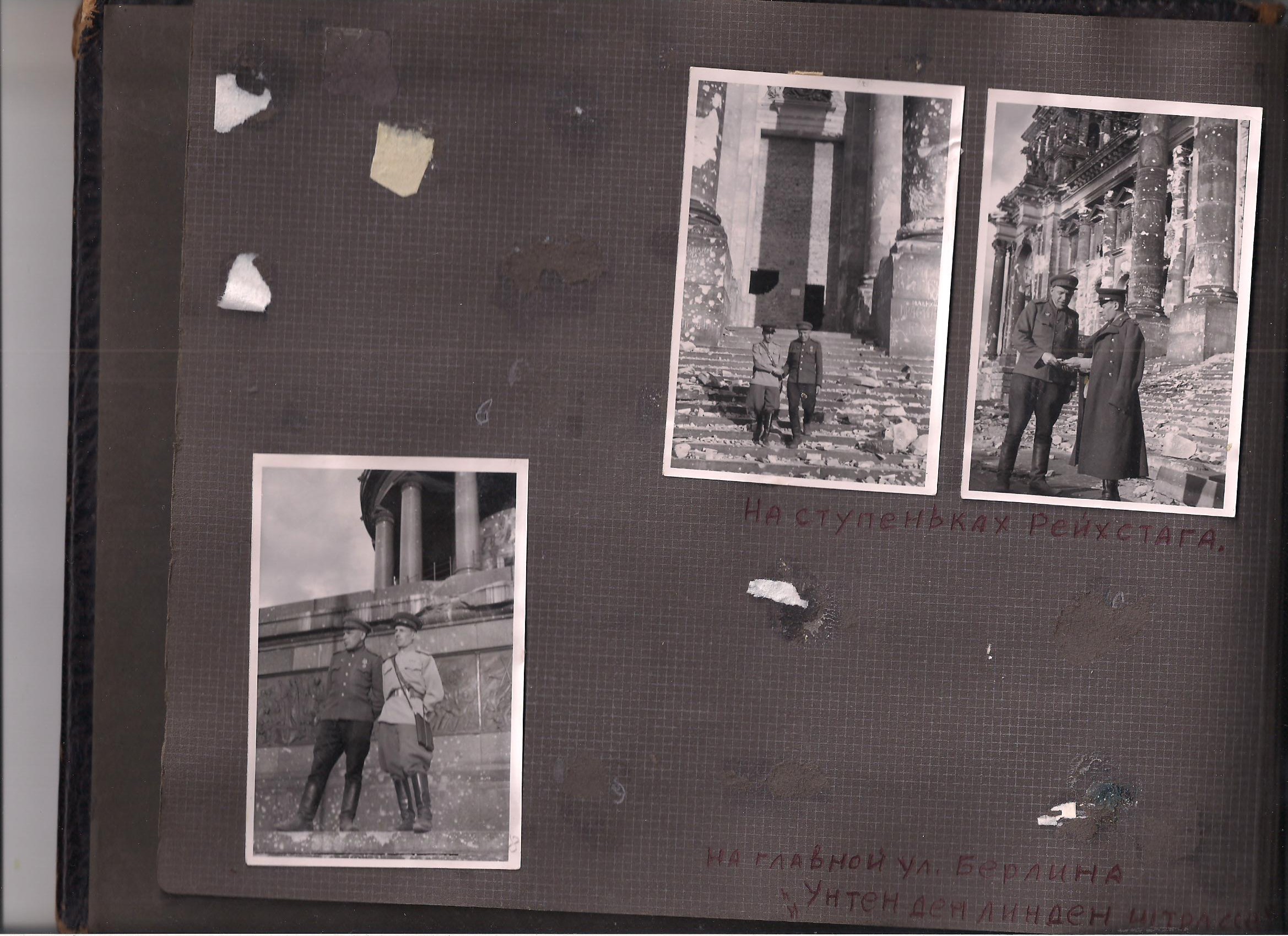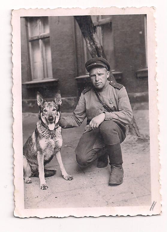 Май 45-го года папа встретил в Берлине. В одной из сводок Совинформбюро было сказано и про них: "... в штурме Рейхстага участвовали войска... и саперы полковника Пруса". Это про папу и его солдат. Они участвовали в разминировании Рейхстага. В одной из комнат Рейхсканцелярии, папа нашел немецкую овчарку, сидевшую в углу. Собака была в шоке, и когда он подошел к ней, не сопротивлялась и дала себя погладить. Павел Алексеевич очень подружился с собакой, она очень преданно к нему относилась, все время пока он был в Берлине. Папа назвал собаку Джоконда.
