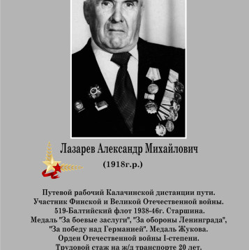 ЛАЗАРЕВ АЛЕКСАНДР МИХАЙЛОВИЧ –(1918г.р.) Участник Великой Отечественной