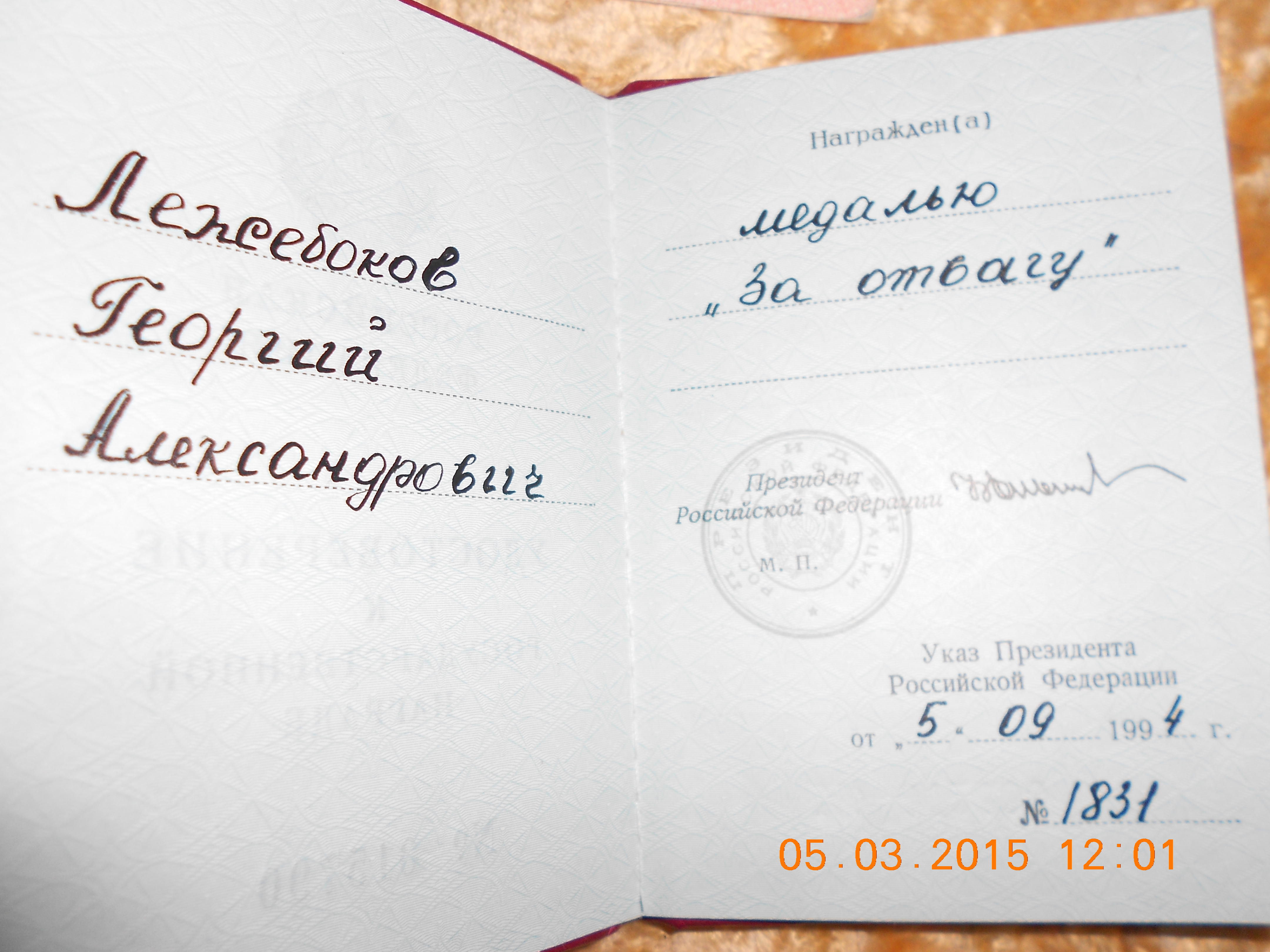 Георгий-значит победитель. И своё имя мой дедушка полностью оправдал! Жизнь у него сложилась нелёгкая. Он был старшим ребёнком в семье и поэтому с 5 лет ему пришлось работать почти наровне со взрослыми. Когда началась ВОВ его отец ушёл на фронт. Жить стало ещё труднее, но несмотря на это мой дедушка закончил школу(тогда это было 7 классов). В 17 лет его забрали в армию. Там он попал в десантные войска. У него на глазах погибали его друзья и товарищи, ему несколько раз пришлось побывать в тылу врага. Он получил осколочное ранение от гранаты и два пулевых ранения. Одна из пуль попала в грудь в двух сантиметрах от сердца! Но он ВЫЖИЛ!!!